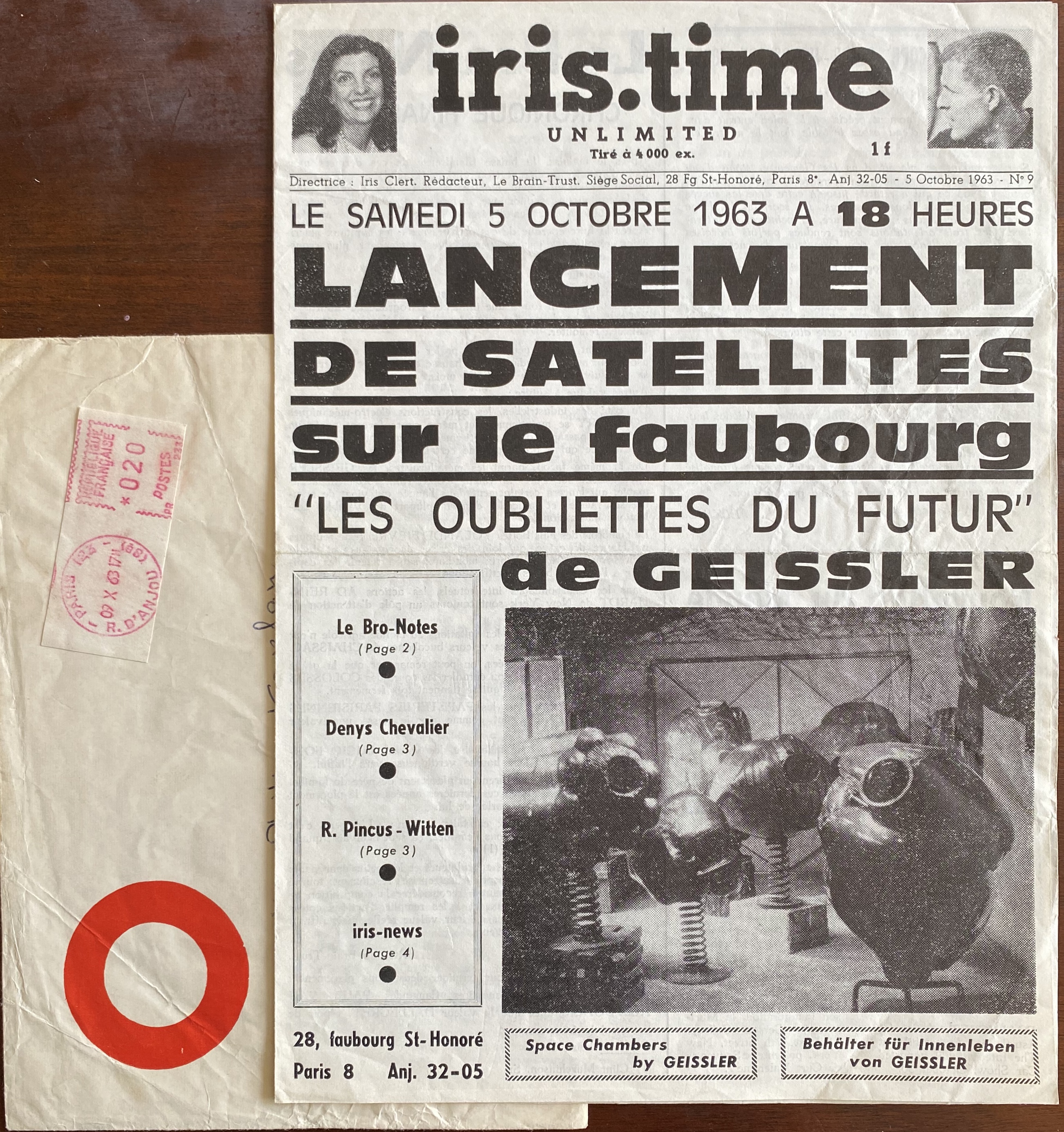 (Klaus Geissler). iris.time unlimited. Number 9. Paris: Iris Clert, 5 octobre 1963