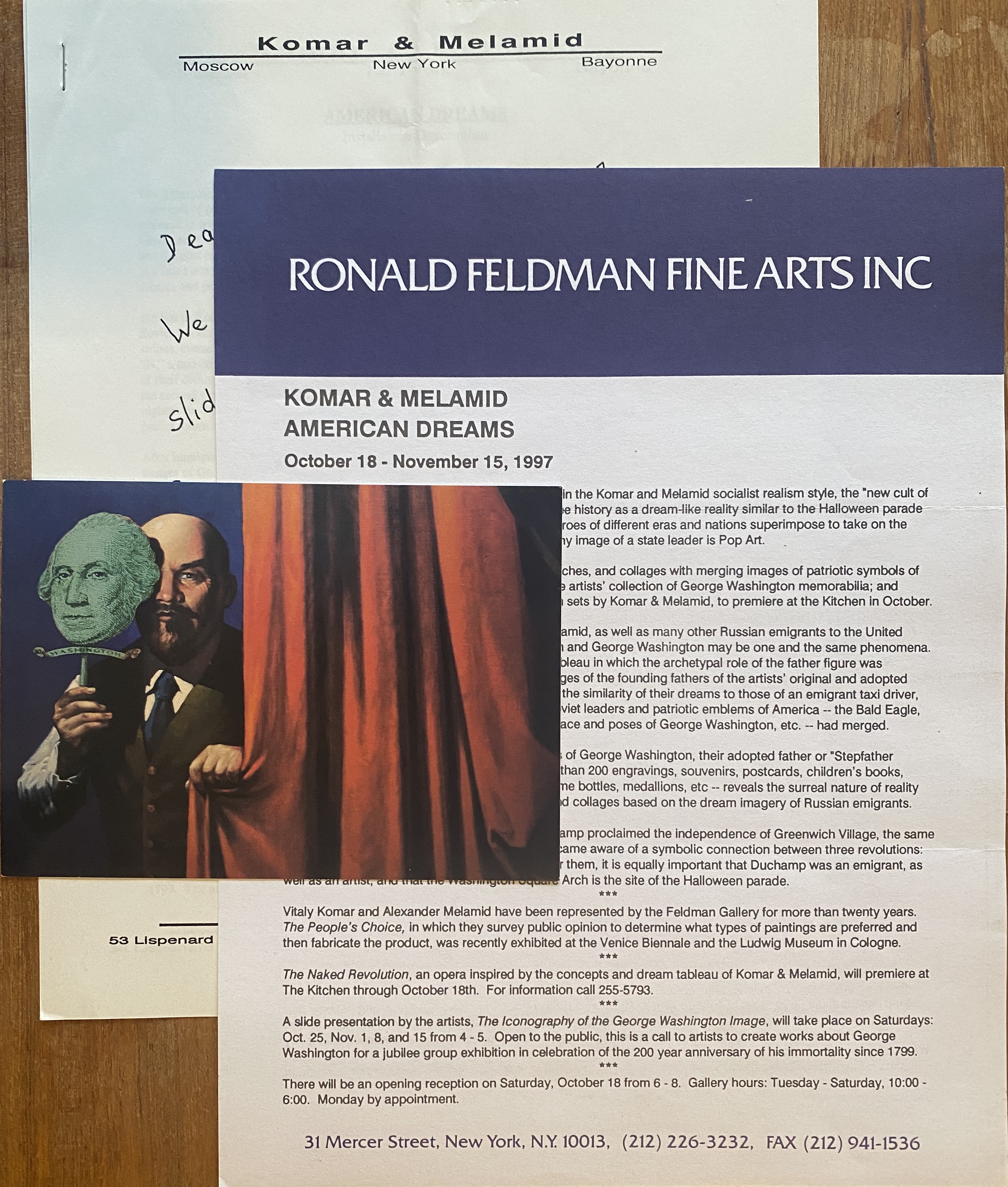 – Komar & Melamid. 30-word holograph invitation to “The Iconography of George Washington Image”