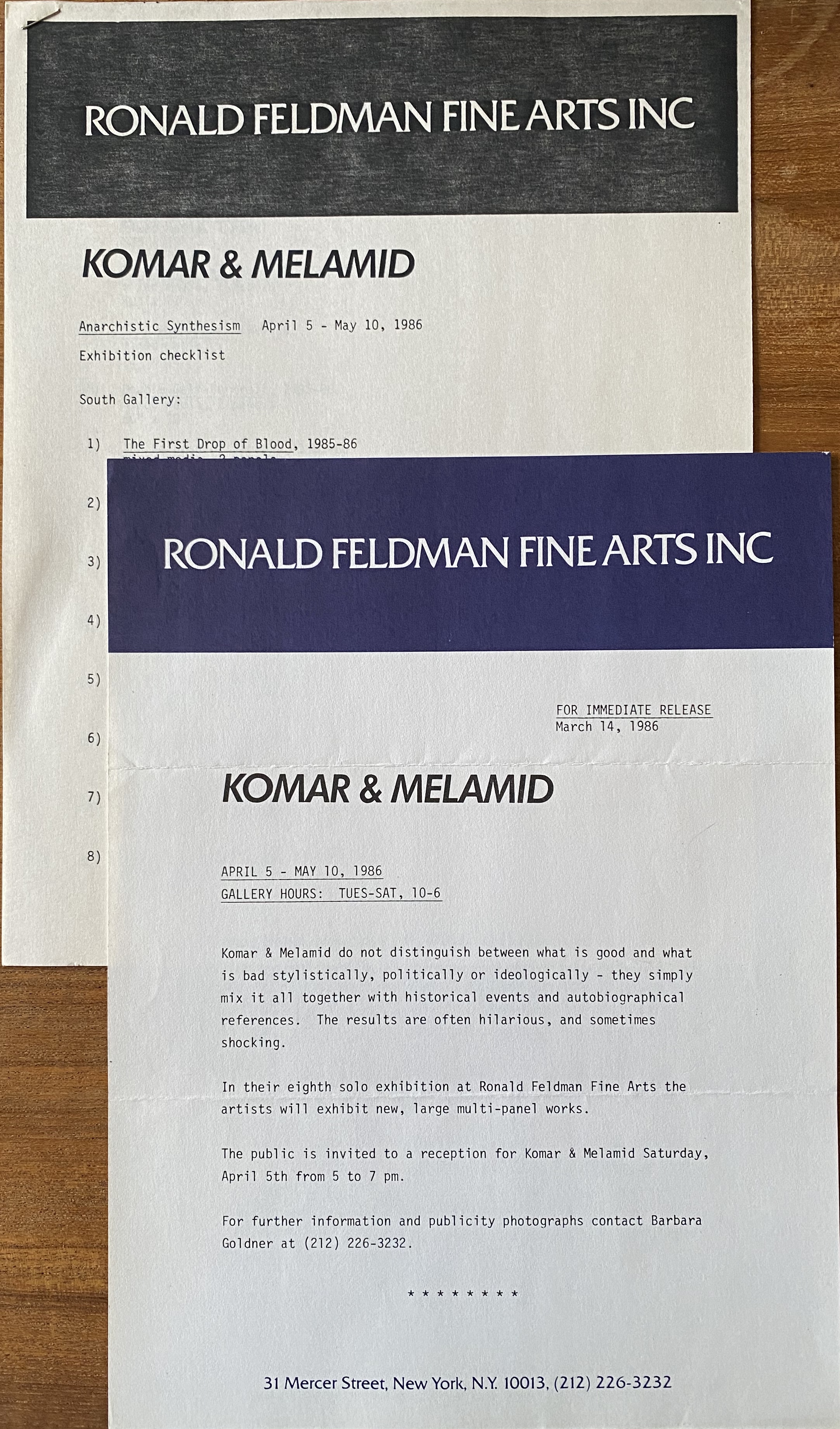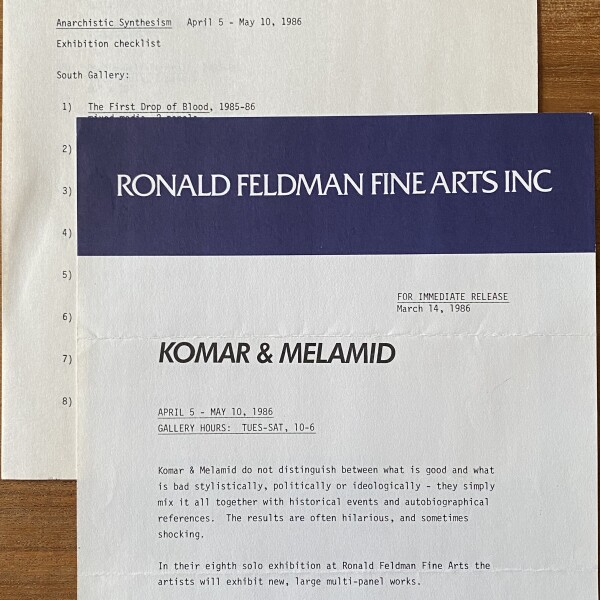 Komar & Melamid. Anarchistic Synthesism. Ronald Feldman Fine Arts, Inc., New York, April 5-May 10, 1986