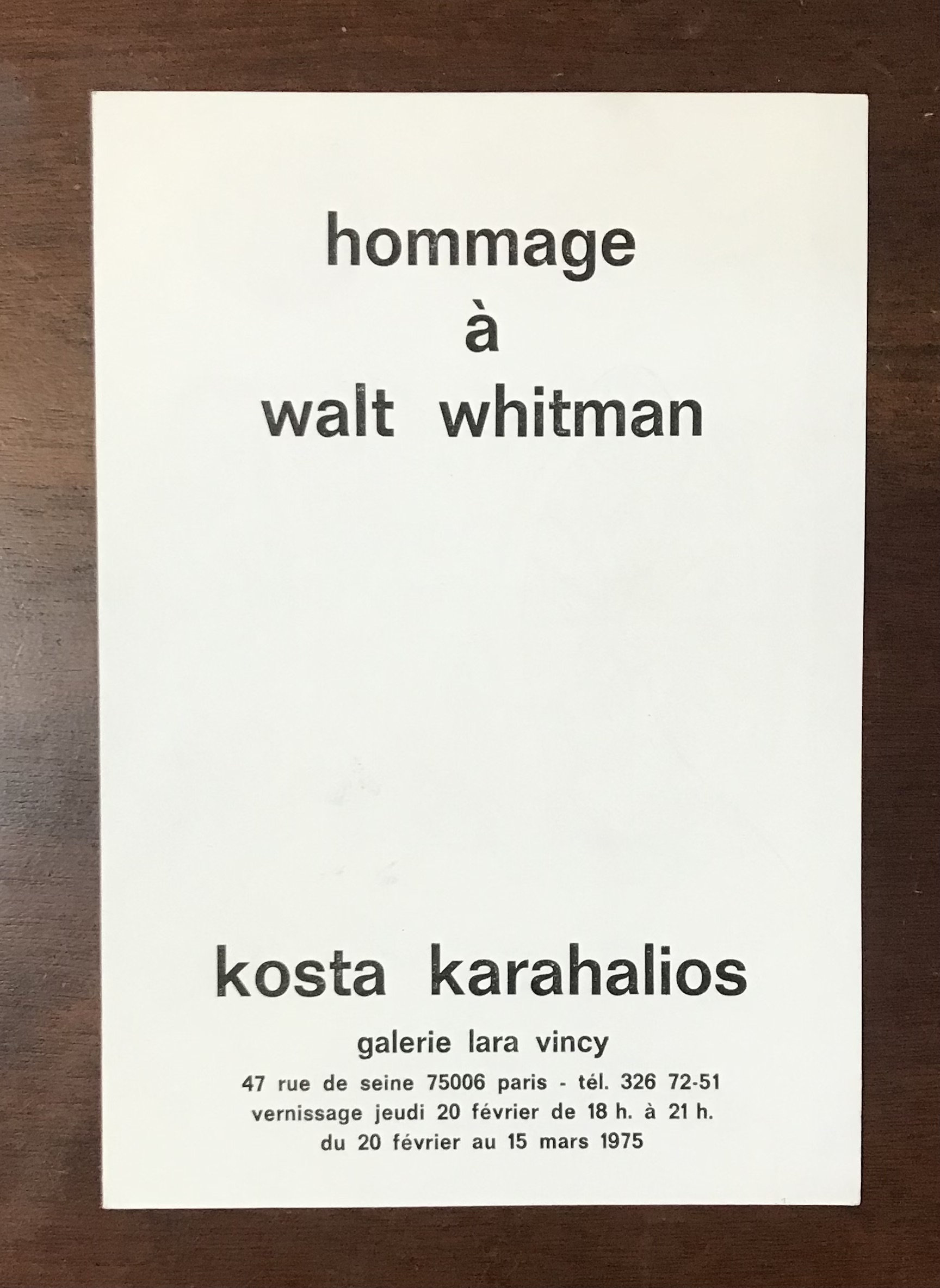 Kosta Karahalios. Hommage à Walt Whitman. Galerie Lara Vincy, Paris, 2 février-15 mars 1975
