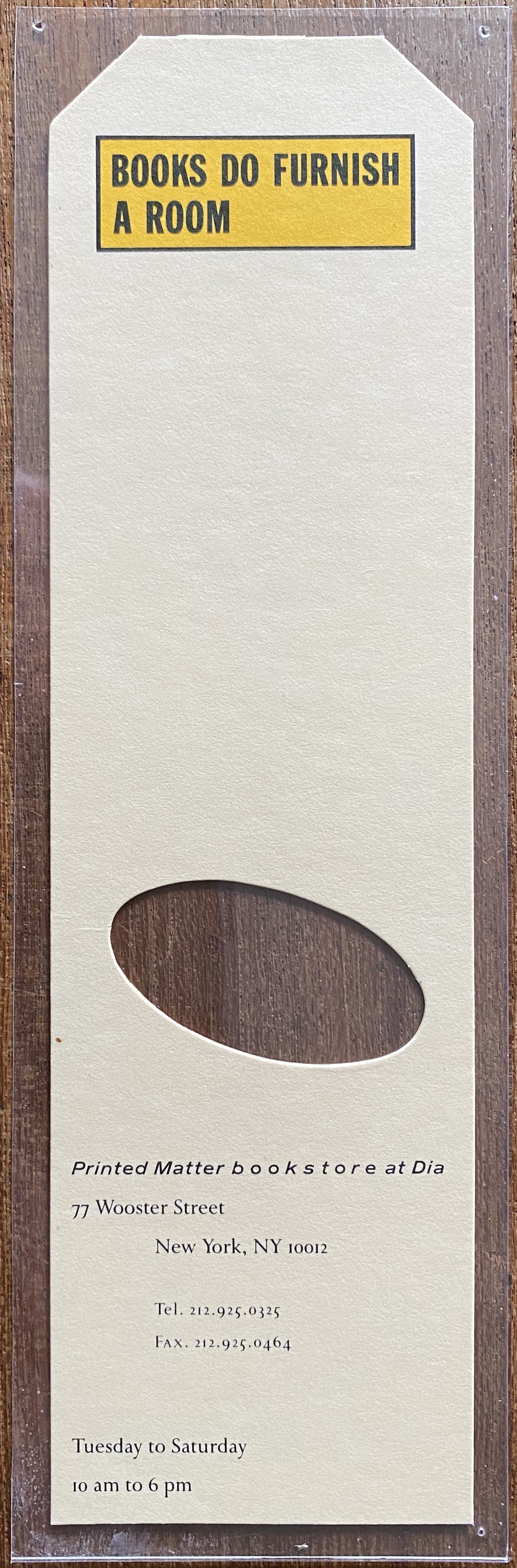 Lawrence Weiner. Books Do Furnish a Room. New York: Printed Matter Bookstore at Dia, 1990