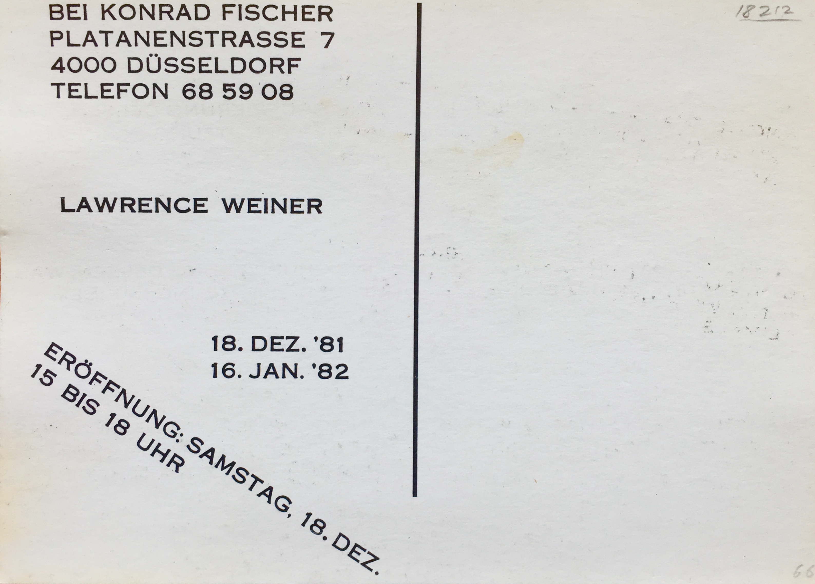 Lawrence Weiner. A grouping of that which is connected… / A grouping of that which is connected… // Eine Gruppierung dessen… / Eine Gruppierung dessen… / Eine Gruppierung dessen… Konrad Fischer, Düsseldorf, 10. Dezember 1981 – 16. January 1982