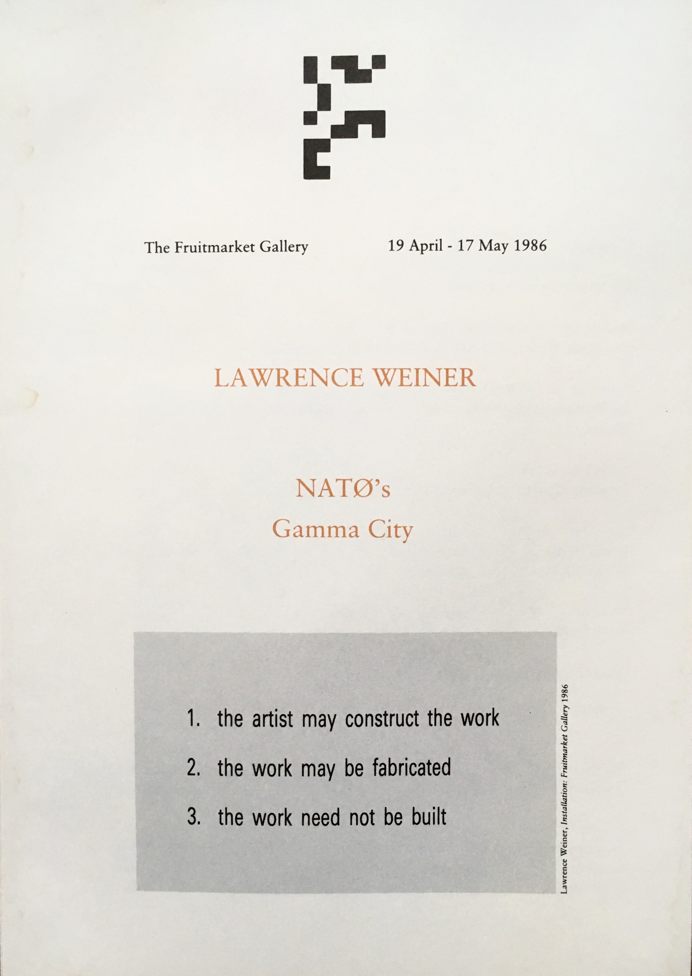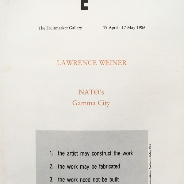 Lawrence Weiner. NATO’s Gamma City. The Fruitmarket Gallery, Edinburgh, 19 April – 17 May 1986