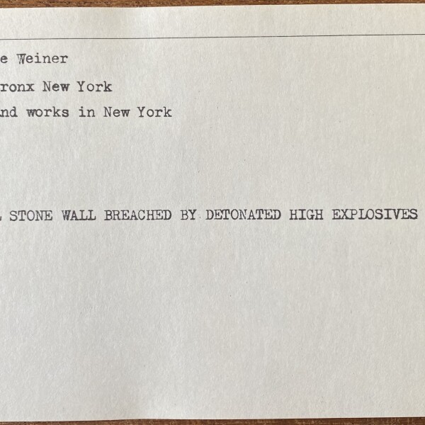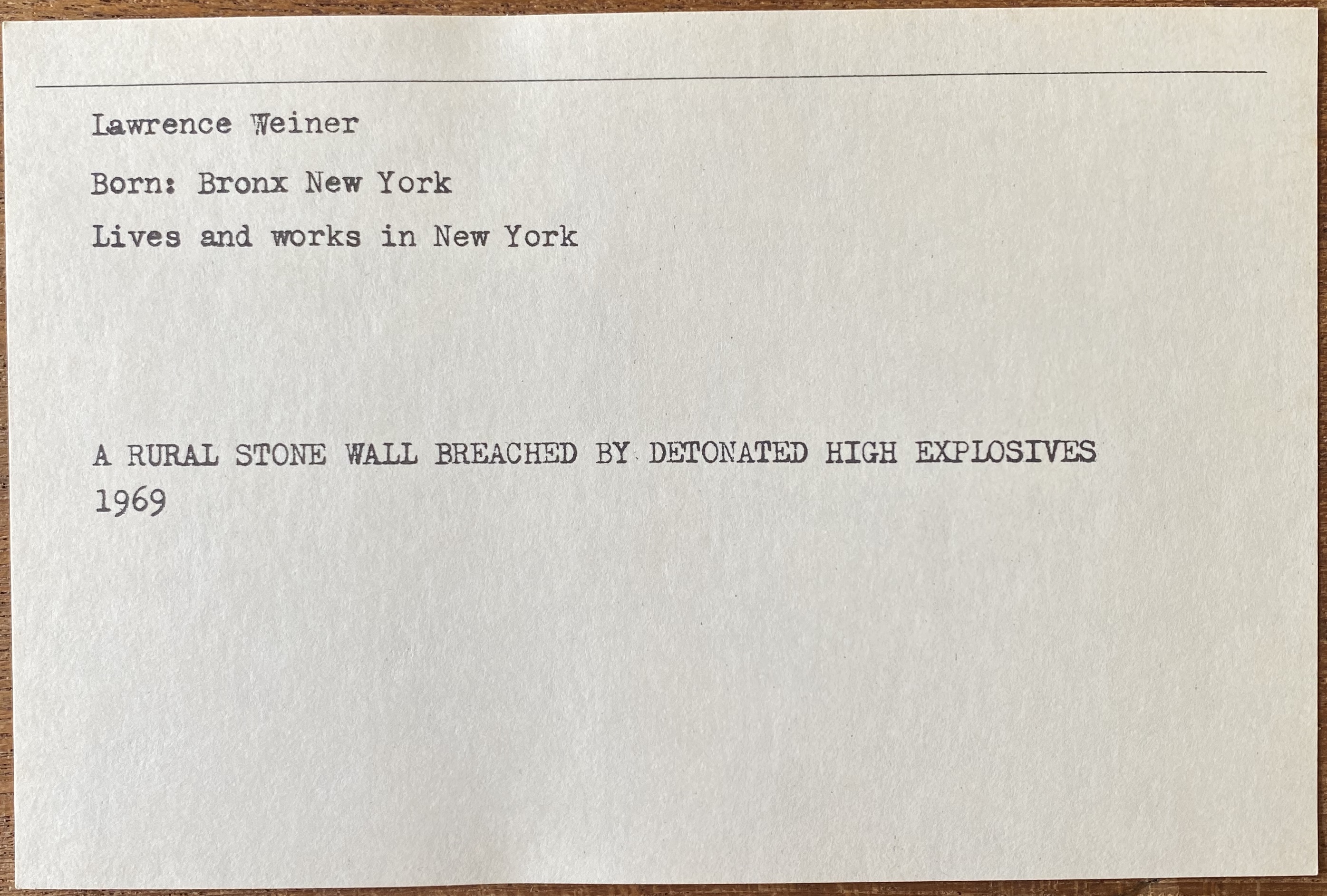 Lawrence Weiner. A rural stone wall breached by detonated high explosives. 1969
