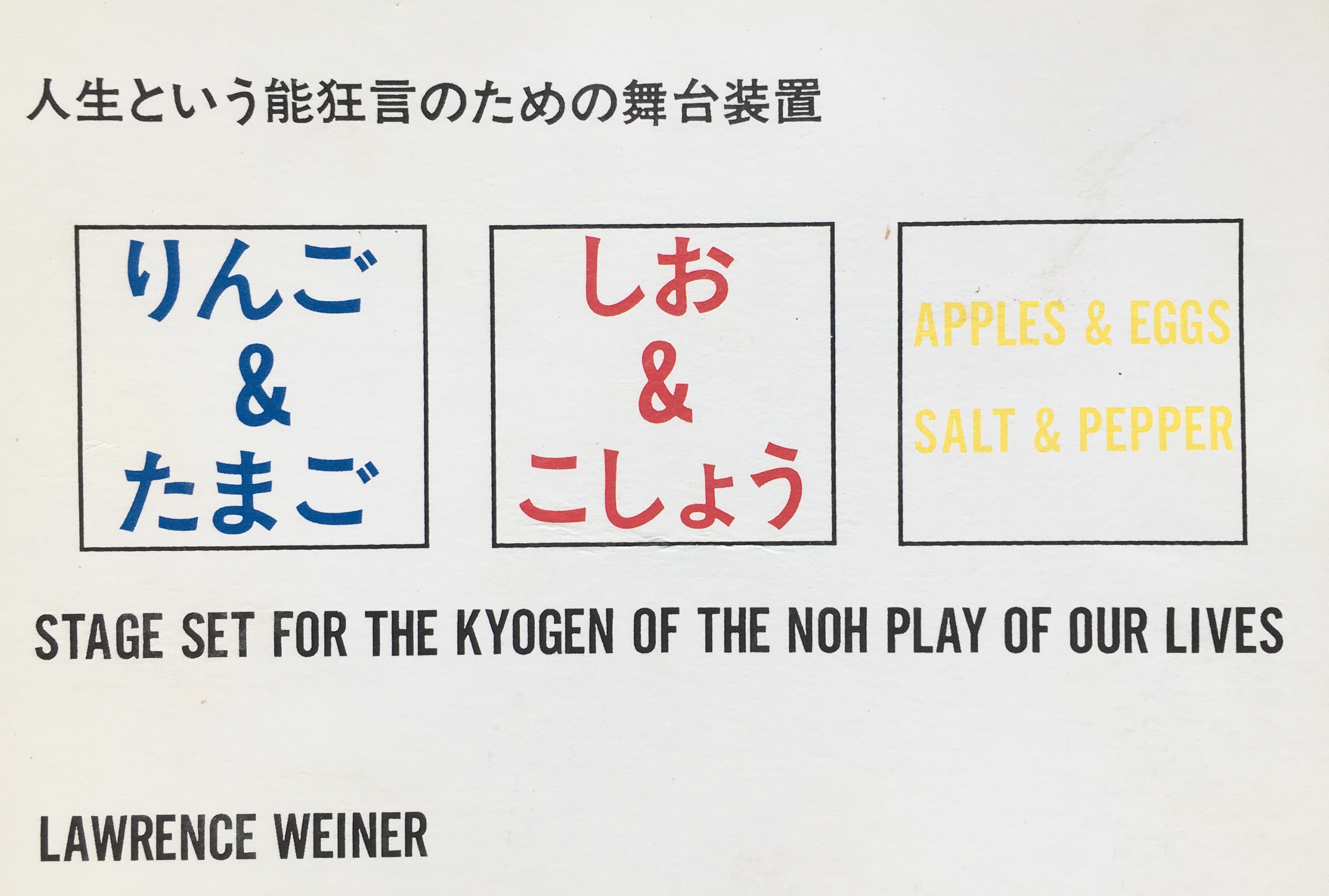 Lawrence Weiner. Stage set for the Kyogen of the not play of our lives. Gallery 360, Tokyo, August 17 – September 2, 1995