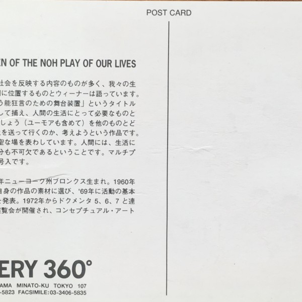 Lawrence Weiner. Stage set for the Kyogen of the not play of our lives. Postcard. 1995