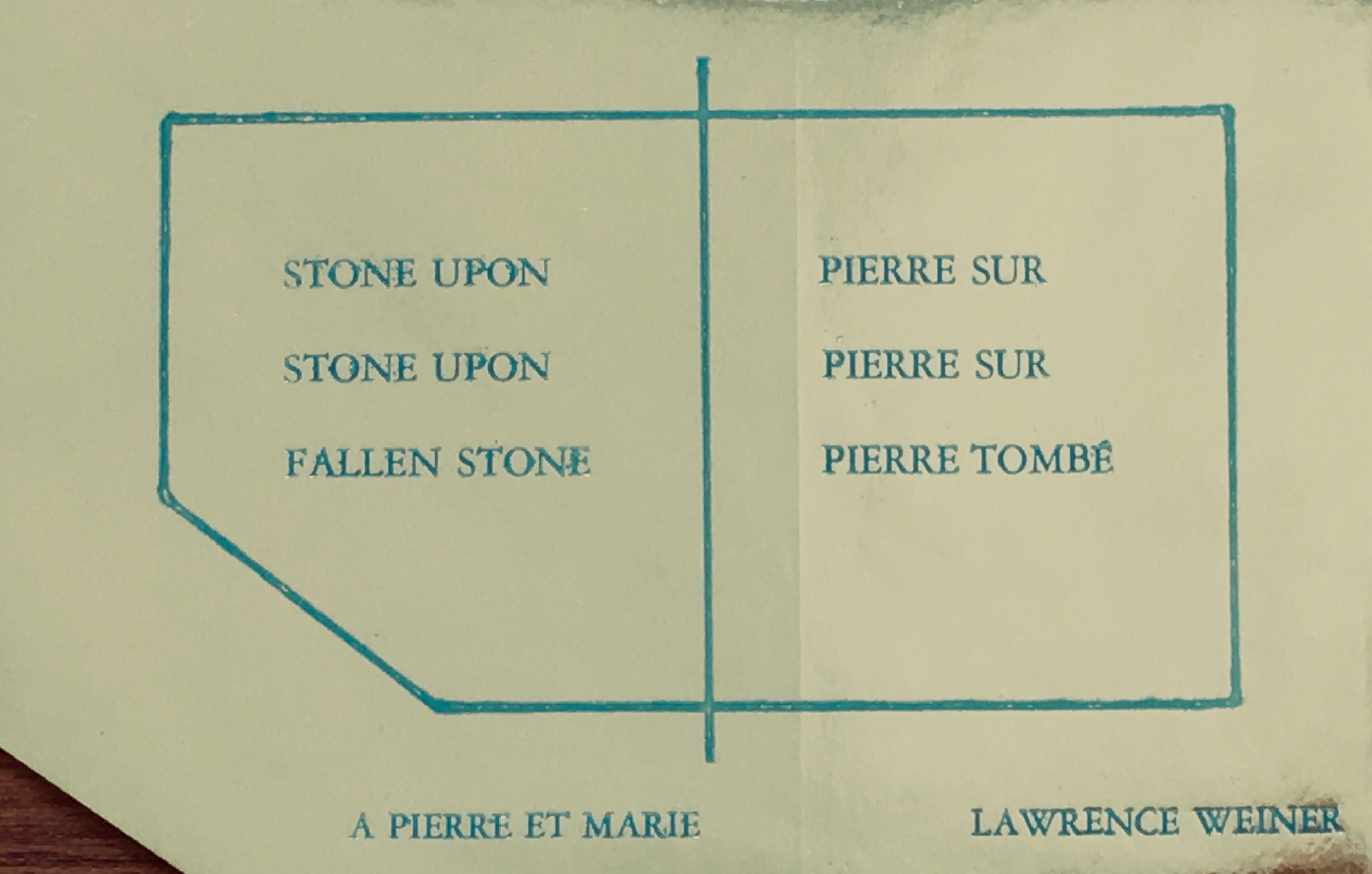 Lawrence Weiner. Stone upon, stone upon, fallen stone / Piere sur, Pierre sur / Pierre tombé