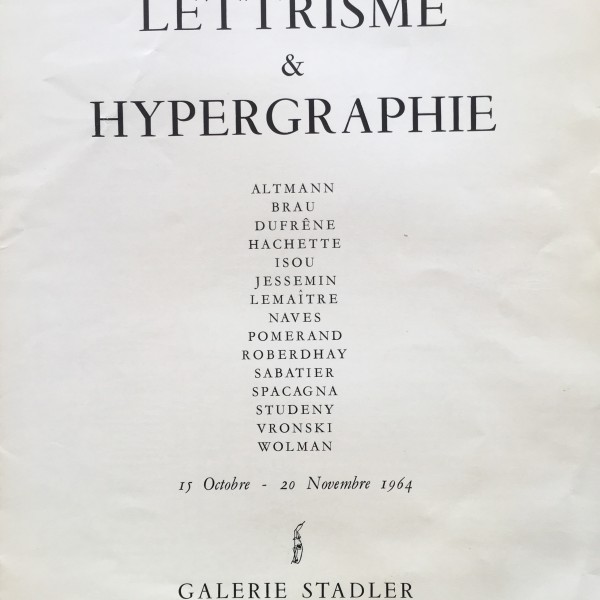 Lettrisme & Hypergraphie. Galerie Stadler, Paris, 15 octobre – 20 novembre 1964