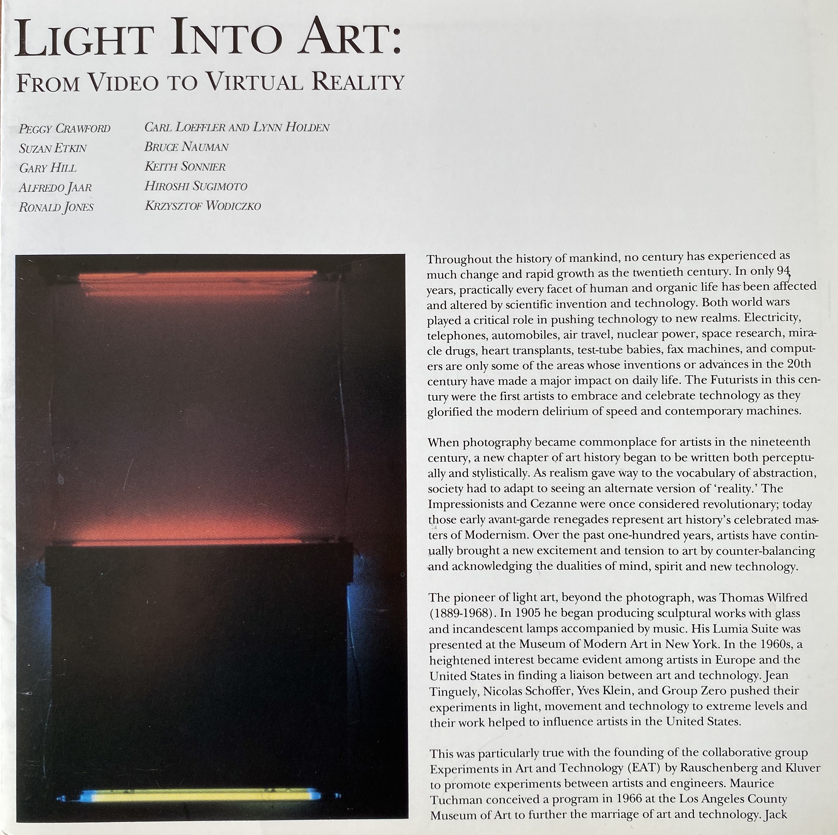 Light Into Art: From Video to Virtual Reality. The Contemporary Arts Center, Cincinnati, Ohio, November 19, 1994 – January 14, 1995