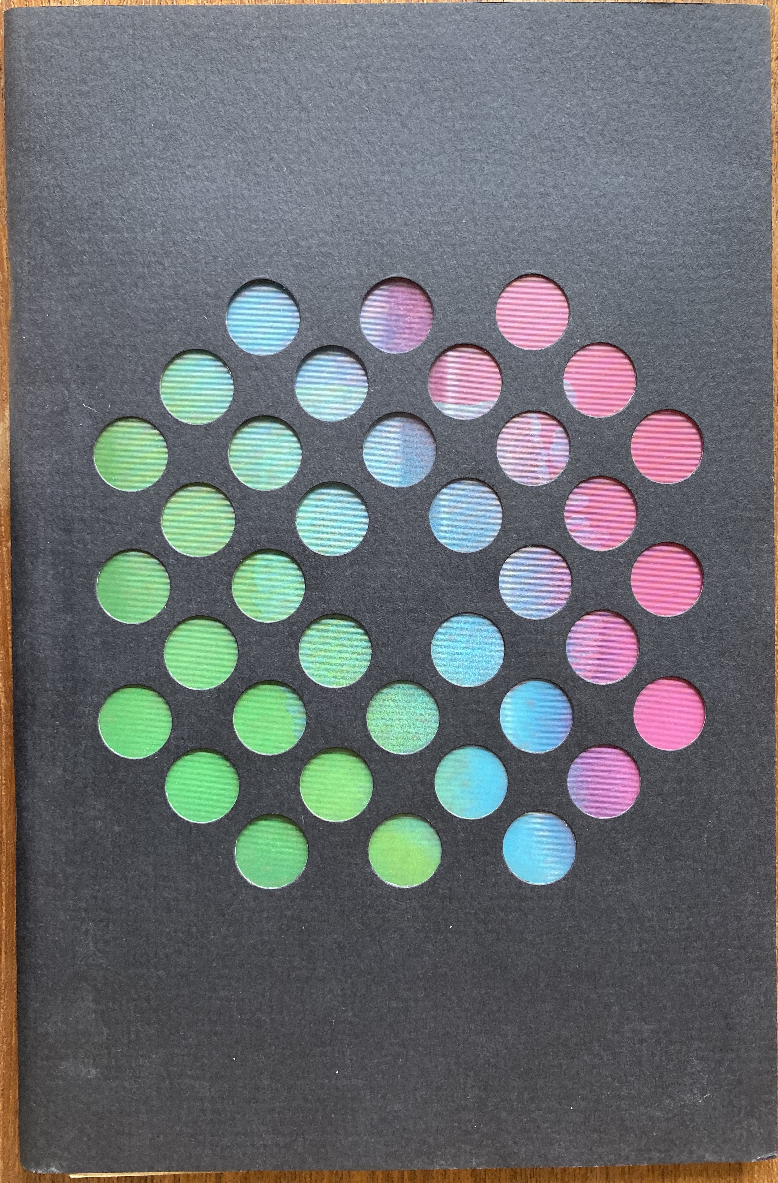 Card stock covers with flaps and with a lenticular plastic plate pasted inside the die-cut from cover’s flap. Catalogue of one work each by Stephen Antonakos, Davide Boriani, Chryssa, Gianni Colombo, John Healy, Richard Hogle, Howard Jones, Julio Le Parc, Heinz Mack, Ronald Mallory, Boyd Mefferd, Bruno Munari, Peter Myer, Abraham Palatnik, Otto Piene, Martial Raysse, Earl Reiback, Thomas Tadlock, Takis, Günther Uecker, John Van Saun, Gregorio Vardanega, and Thomas Wilfred; selected bibliography. 26 illustrations