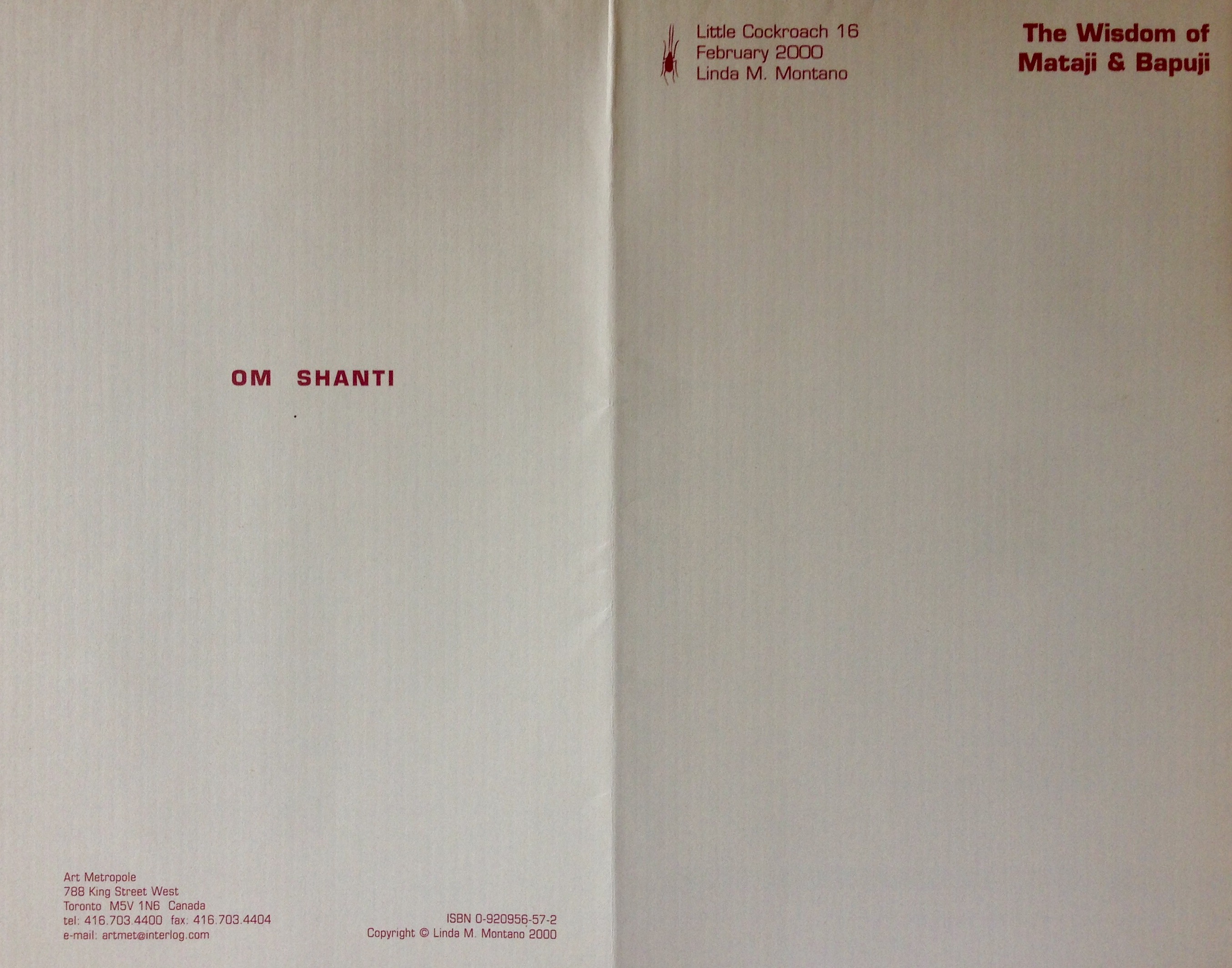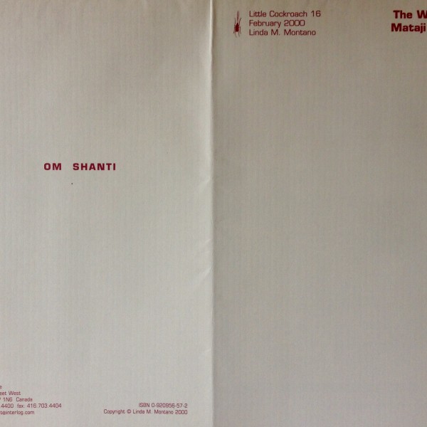 Linda Montano. The Wisdom of Dr. Aruna Mehta (Mataij) & Dr. A. L. Mehta (Bapuji). Toronto: Art Metropole, February 2000. (little cockroach 16)