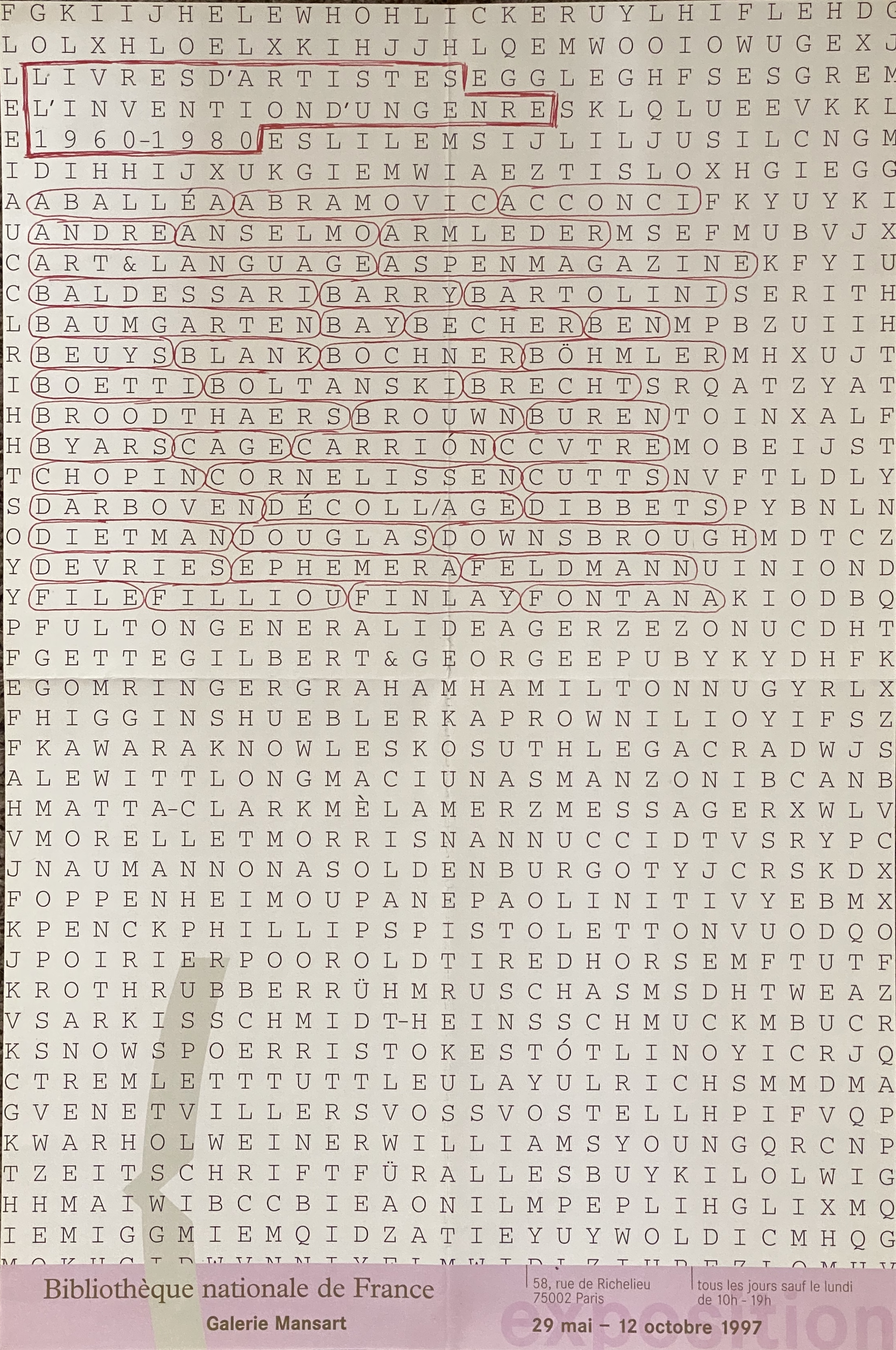 Livres d’artistes. L’invention d’un genre, 1960-1980. Bibliothèque nationale de France, Galerie Mansart, Paris, 29 mai – 12 octobre 1997