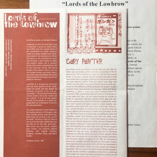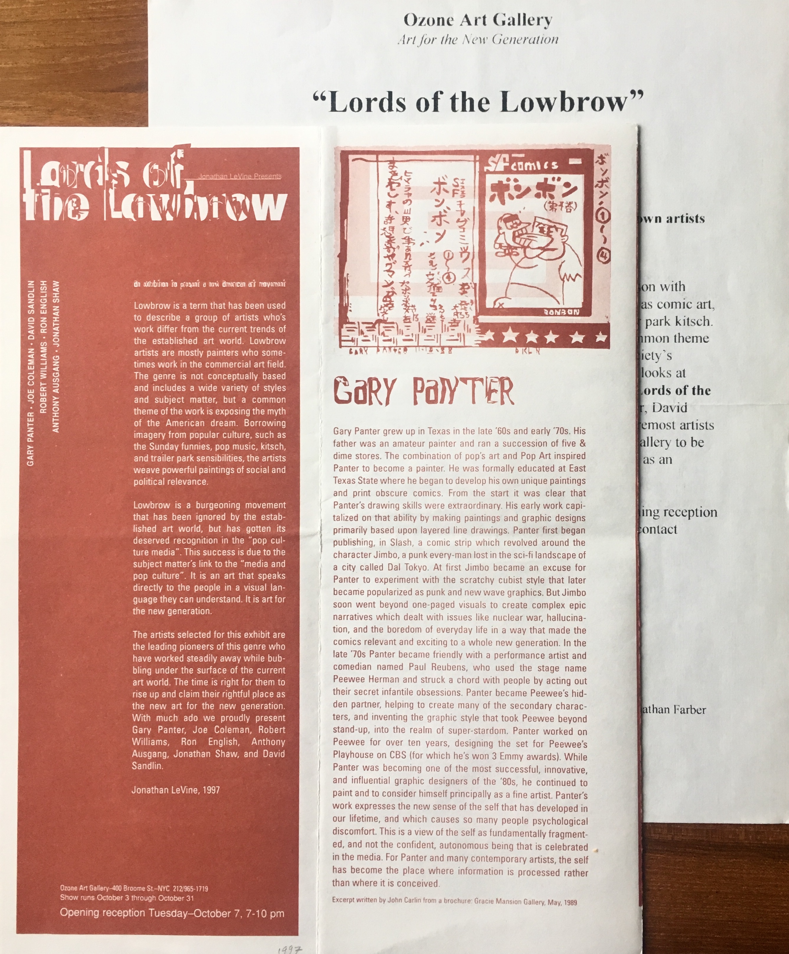 “Lords of the Lowbrow.” Ozone Art Gallery, [New York], October 3-31, [1997]