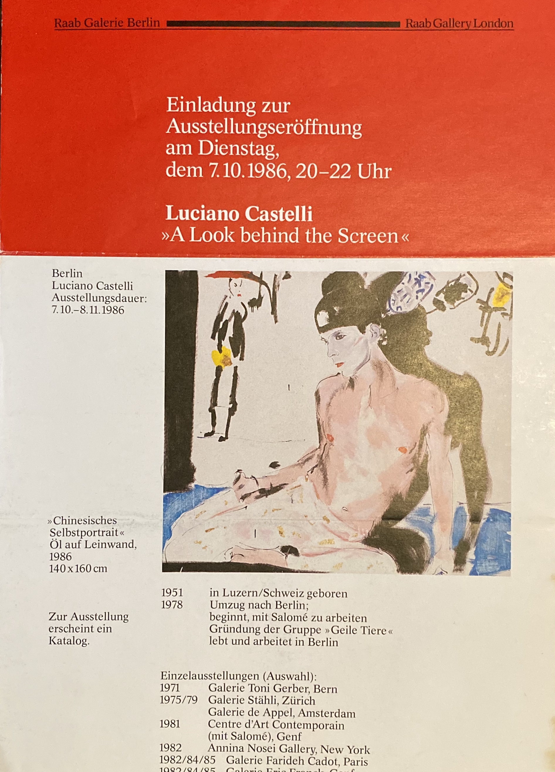 Luciano Castelli. “A Look behind the Screen.” Raab Galerie, Berlin, 7.10.-8.11.1986
