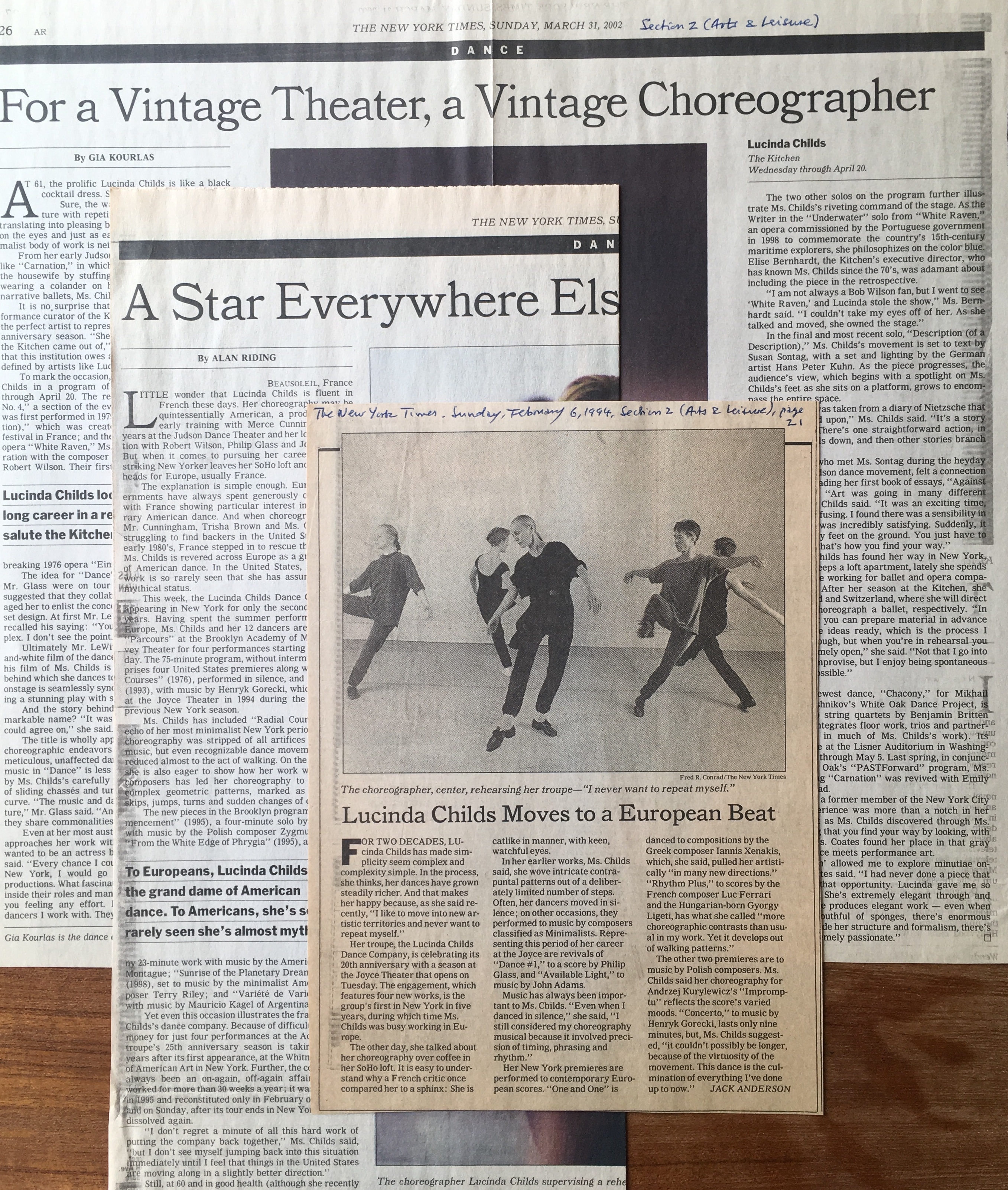 (Lucinda Childs). 3 New York Times article clippings