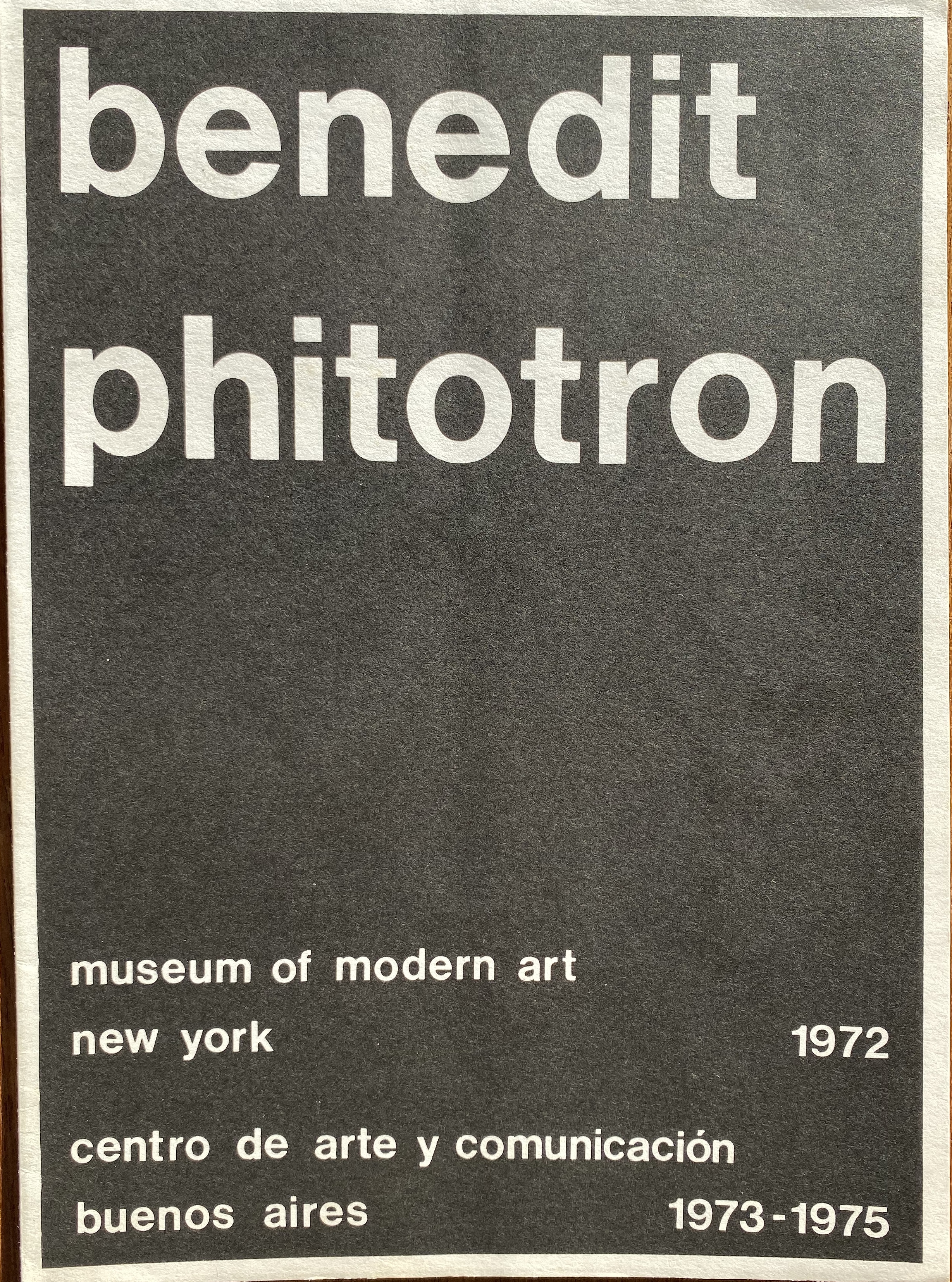 (Luis Fernando Benedit). Benedit. Phitotron. Museum of Modern Art, New York, 1972 / Centro de arte y comunicación, Buenos Aires, 1973-1975