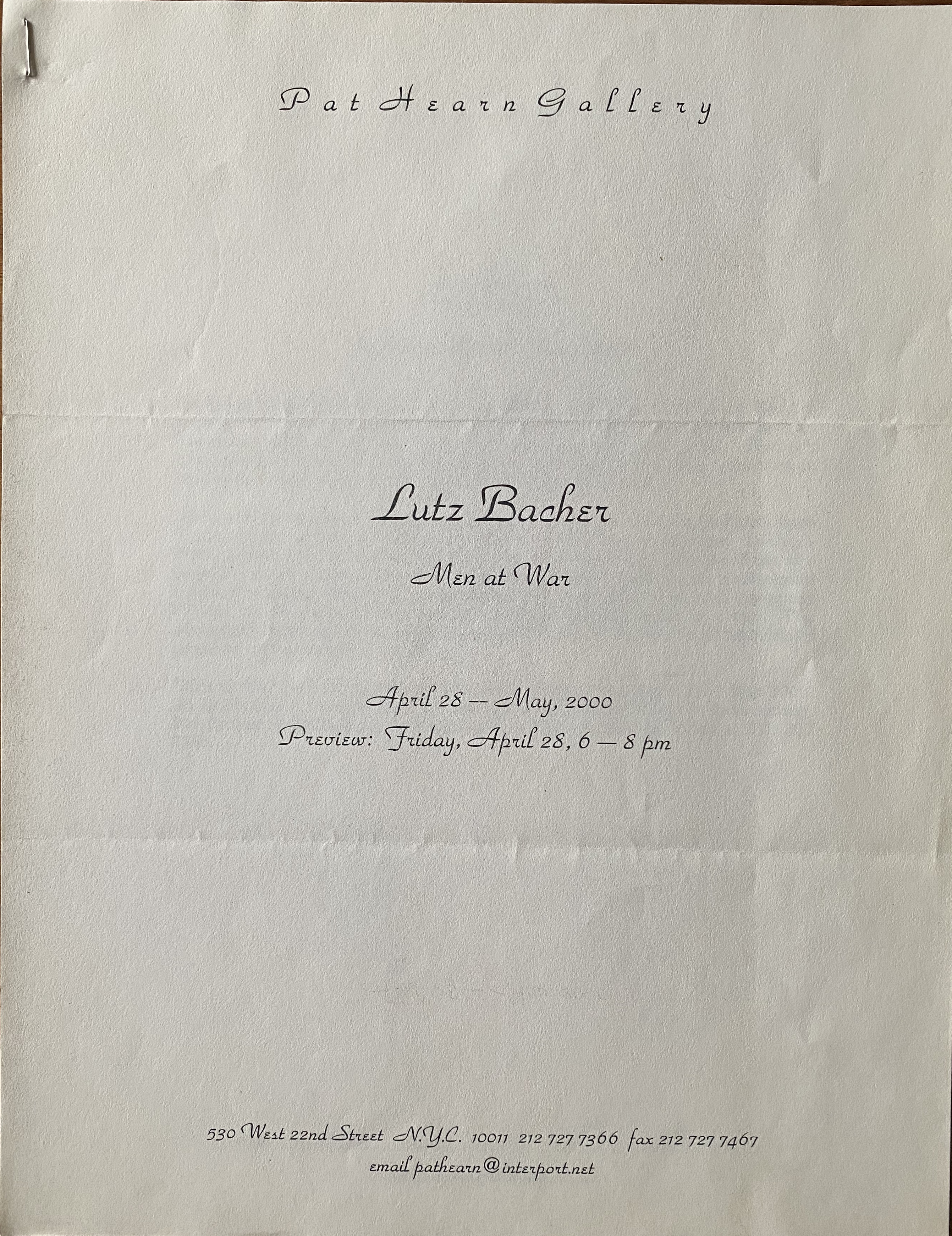 Lutz Bacher. Men at War. Pat Hearn Gallery, New York, April 28 – May 2000
