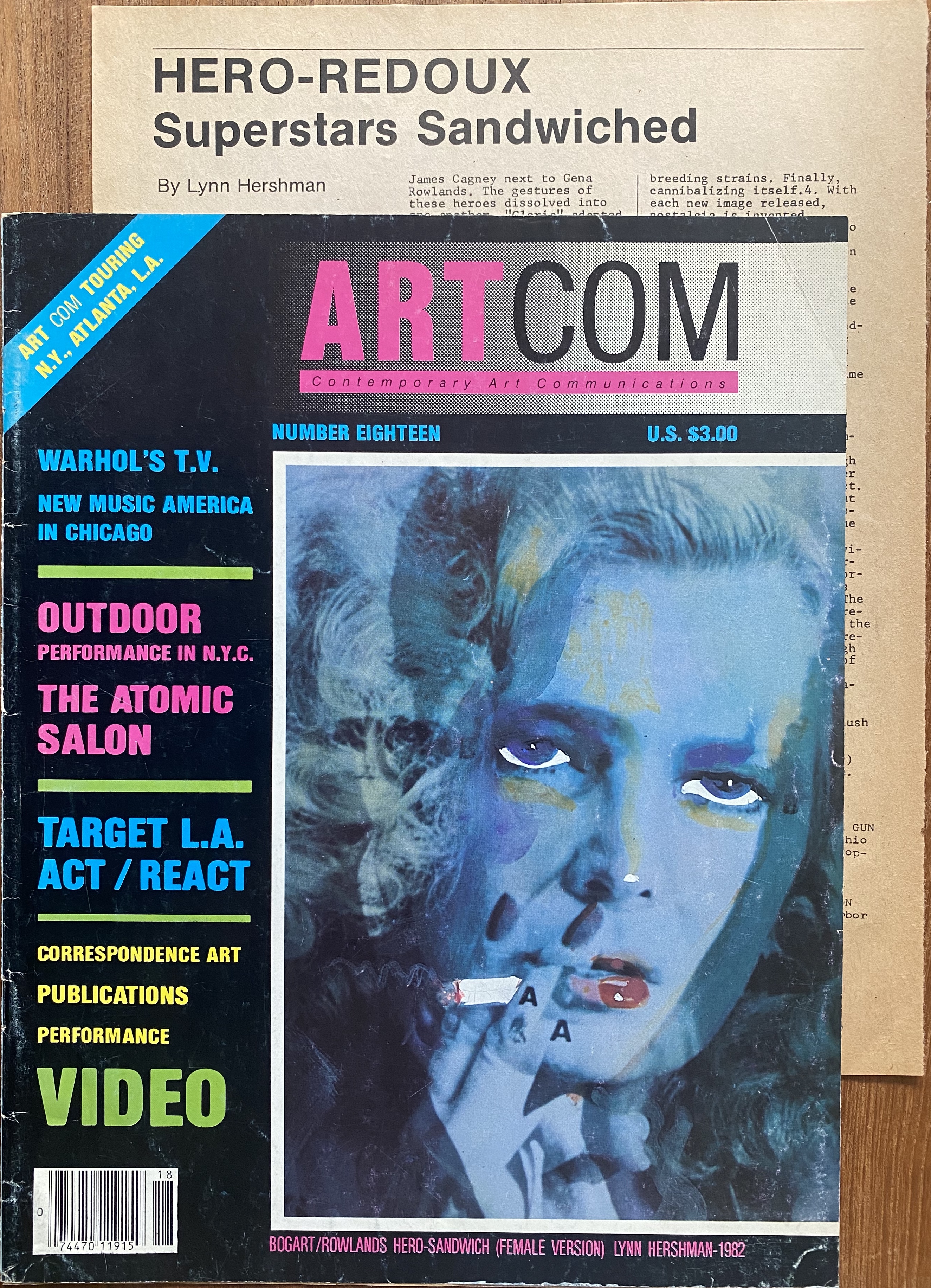 Lynn Hershman. Hero-Redux. Superstars Sandwiched. Artcom. Number 18 (i.e. volume 5/#2. Misprinted “Number 17” on Contents page). San Francisco, 1982