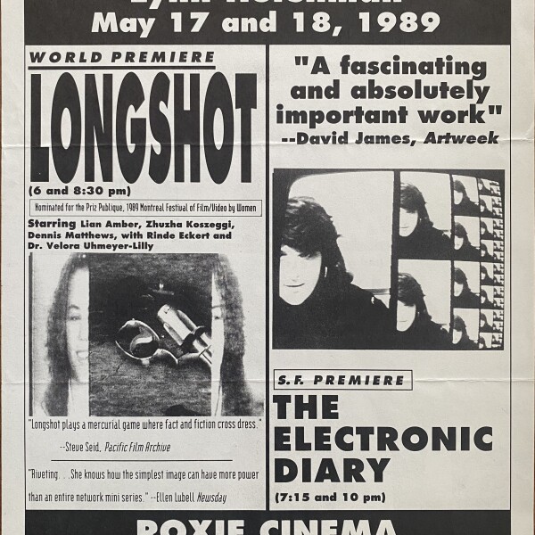 (Lynn Hershman Leeson). Lynn Hershman. Long Shot, The Electronic Diary. Roxie Cinema, [San Francisco], April 18, 19, 1989