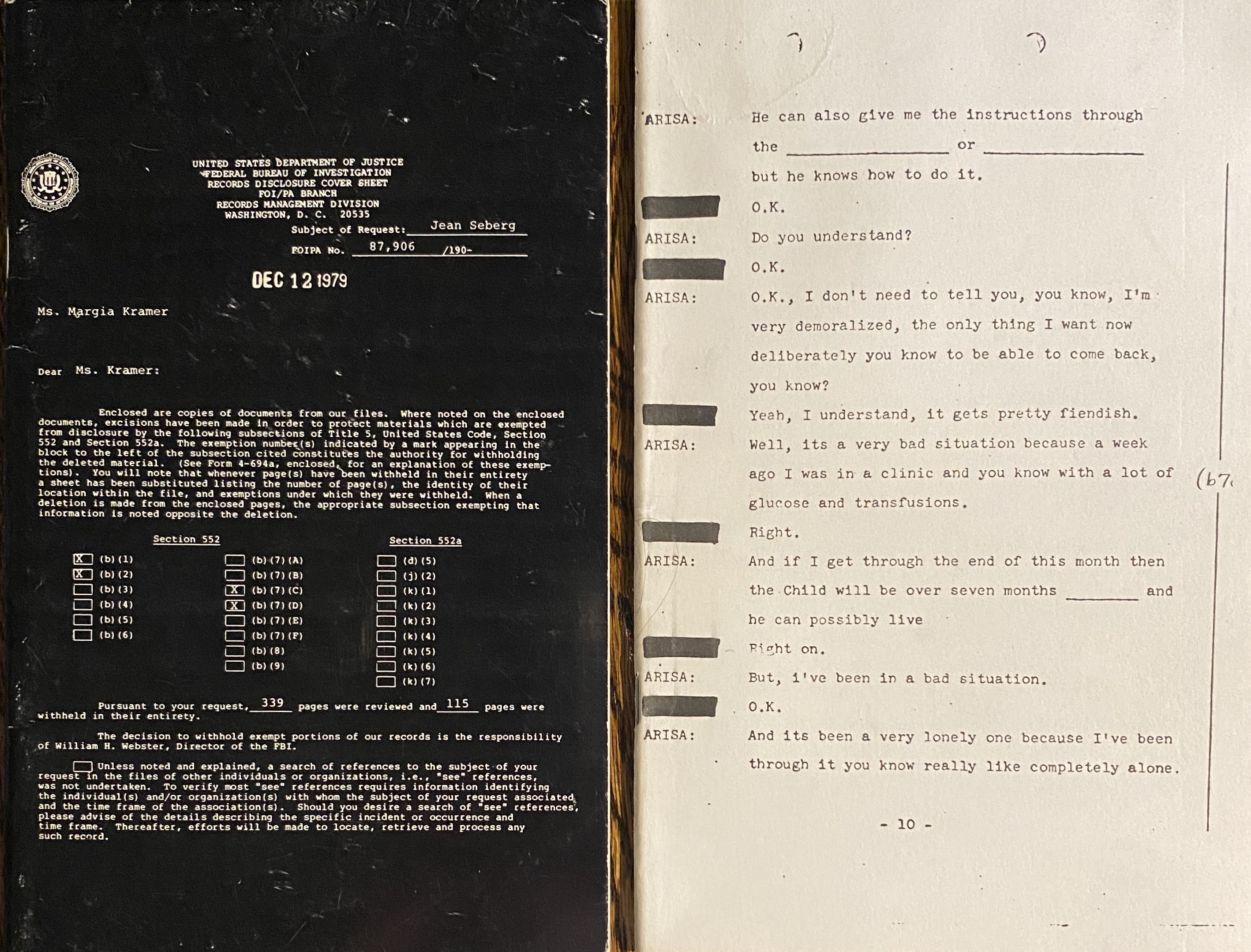 Margia Kramer. Essential Documents: The F.B.I. File on Jean Seberg. Part II. No place: Margia Kramer, 1980 (copyright 1979)