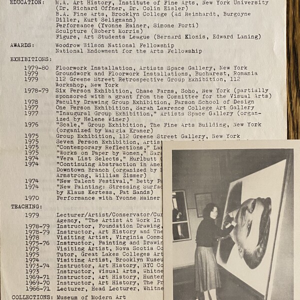 Margia Kramer. “Part I: Secret” A Floor Installation. Artists Space, New York, January 5-19, 1980