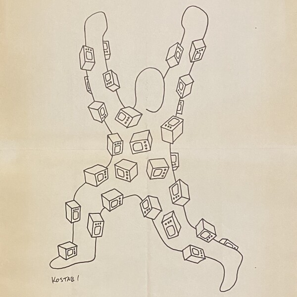 Everyman Interviews Mark Kostabi on front panel (page 1) when folded horizontally (not pictured)
