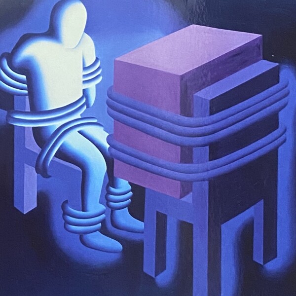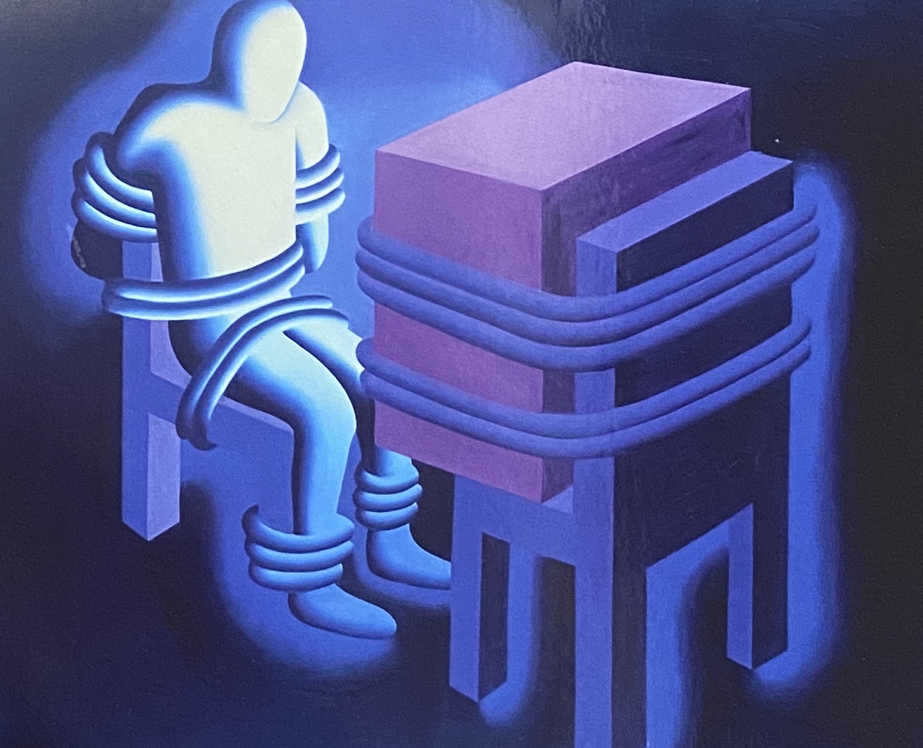 (Mark Kostabi). Mark Kostabi at the Tamara Bane Gallery, [Los Angeles, California], December 31, [1988] to February 2, 1989