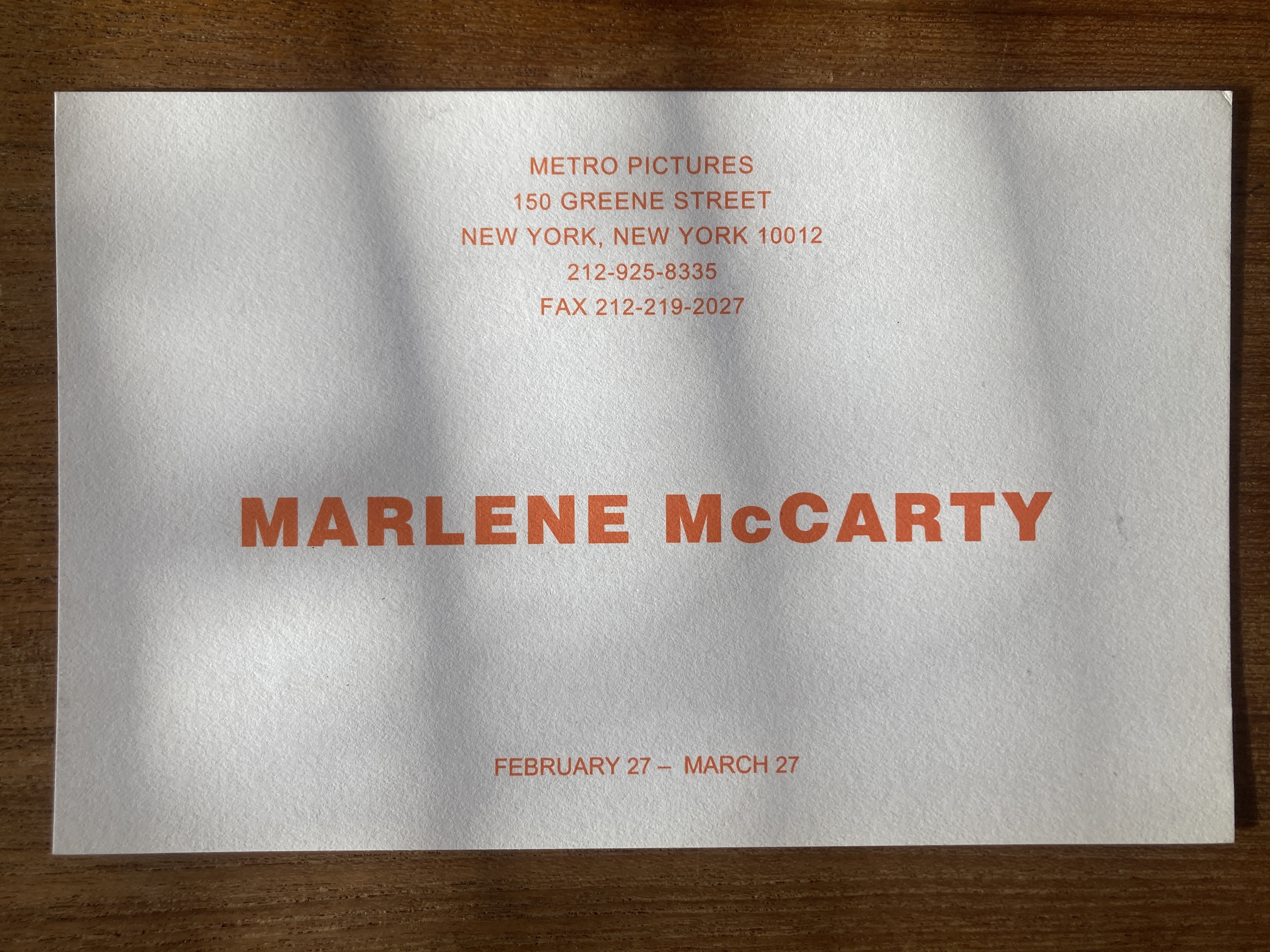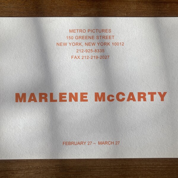 (Marlene McCarty). Marlene McCarty. Metro Pictures, New York, February 27 – March 27, [1993]
