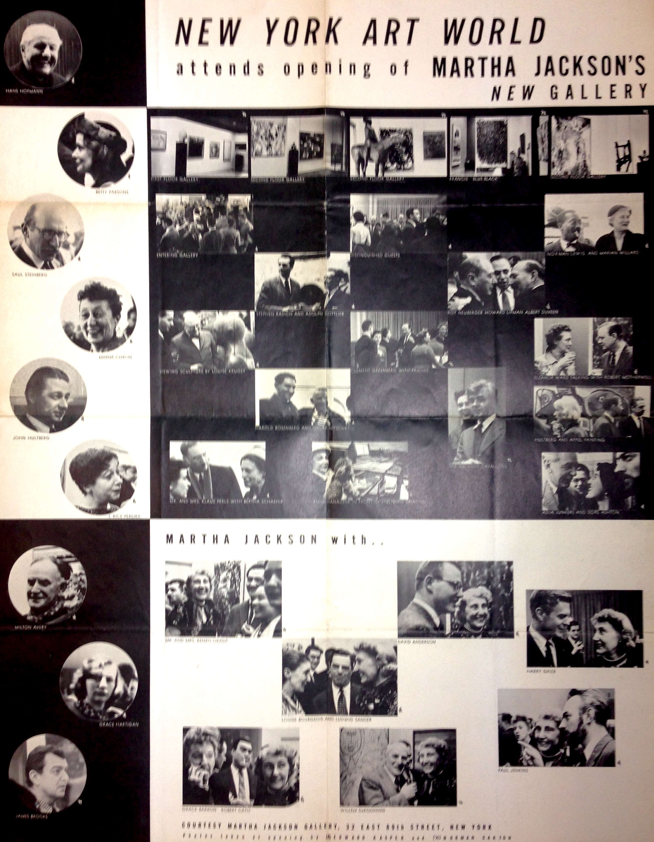 35 photographs by Edward Kasper or Norman Carton laid out in a combination of porthole and checkerboard design: installation views, artists, dealers, critics and collectors. Artists Milton Avery, Louise Bourgeois, James Brooks, Giorgio Cavallon, Minna Citron, Willem de Kooning, Adolph Gottlieb, Grace Hartigan, Hans Hofmann, John Hultberg, Paul Jenkins, Norman Lewis, Robert Motherwell, Kenzo Okada, Irene Rice Pereira, Ludwig Sander, Saul Steinberg, and Adja Yunkers; dealers David Anderson, Albert Duveen, Martha Jackson, Betty Parsons, Klaus Perls, Stephen Radich, Bertha Schaeffer, Eleanor Ward, Marian Willard; and critics Dore Ashton, Clement Greenberg and Harold Rosenberg
