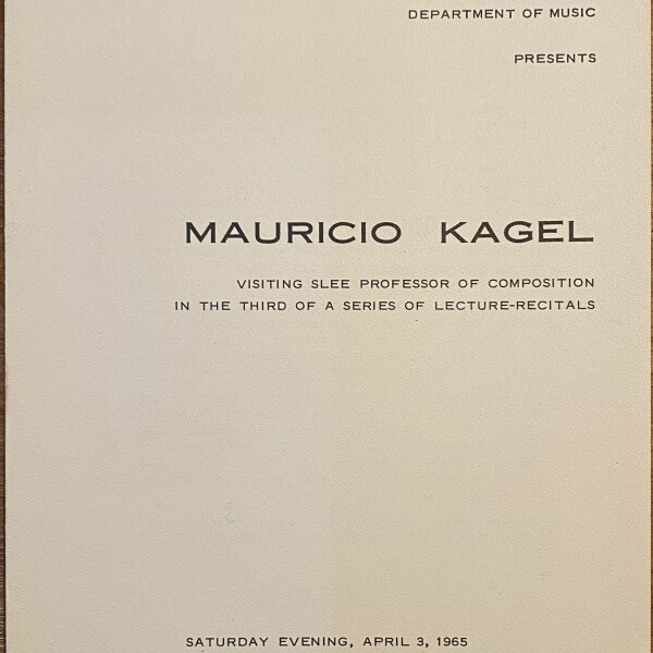 (Mauricio Kagel). Mauricio Kagel. The State University of New York at Buffalo, Buffalo, New York, Baird Hall April 8, 1965