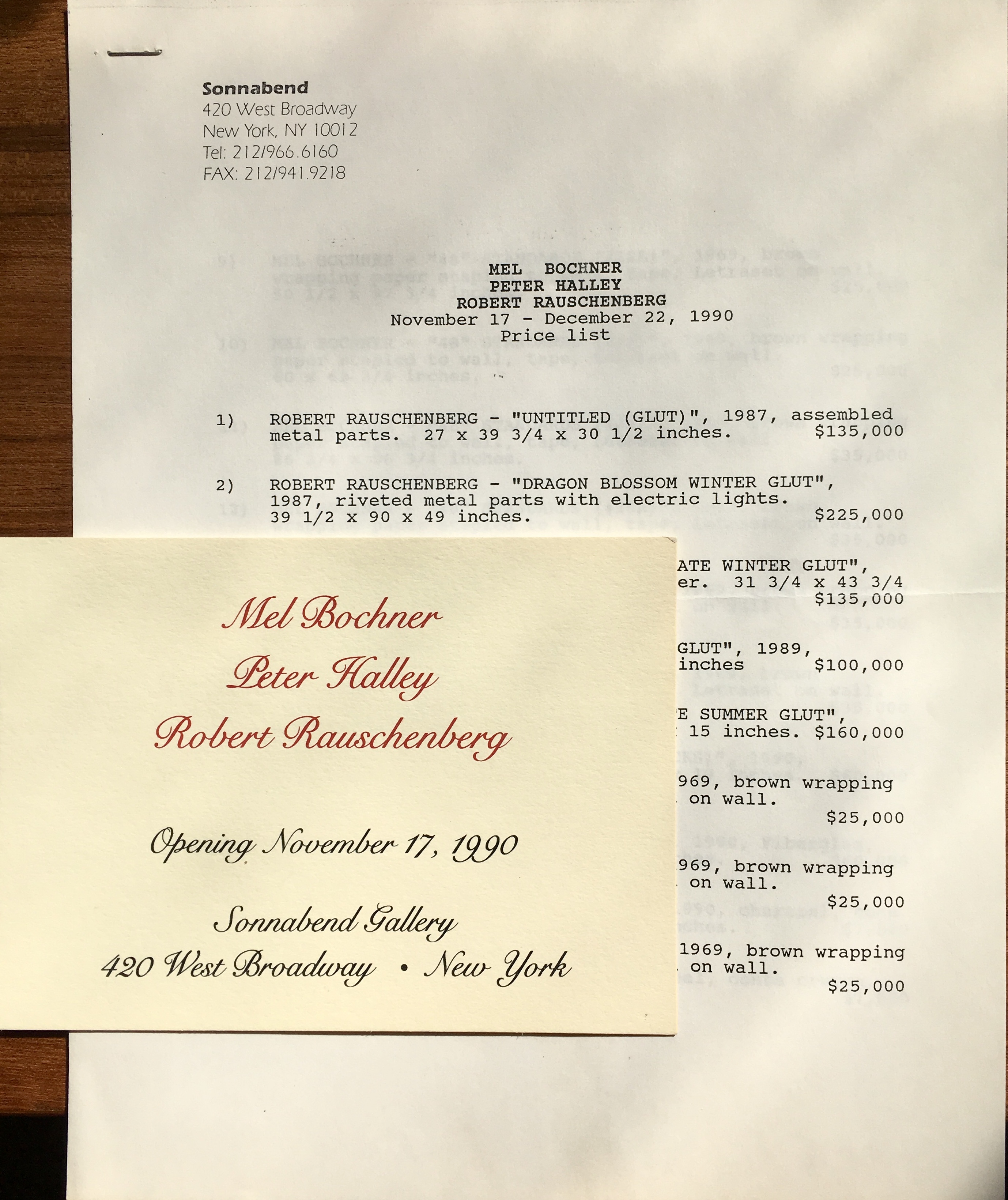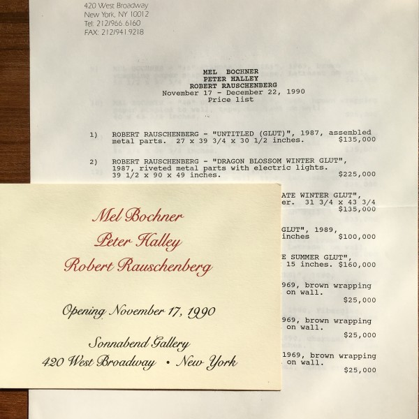 Mel Bochner, Peter Halley, Robert Rauschenberg. Sonnabend Gallery, New York. Opening November 17, 1990