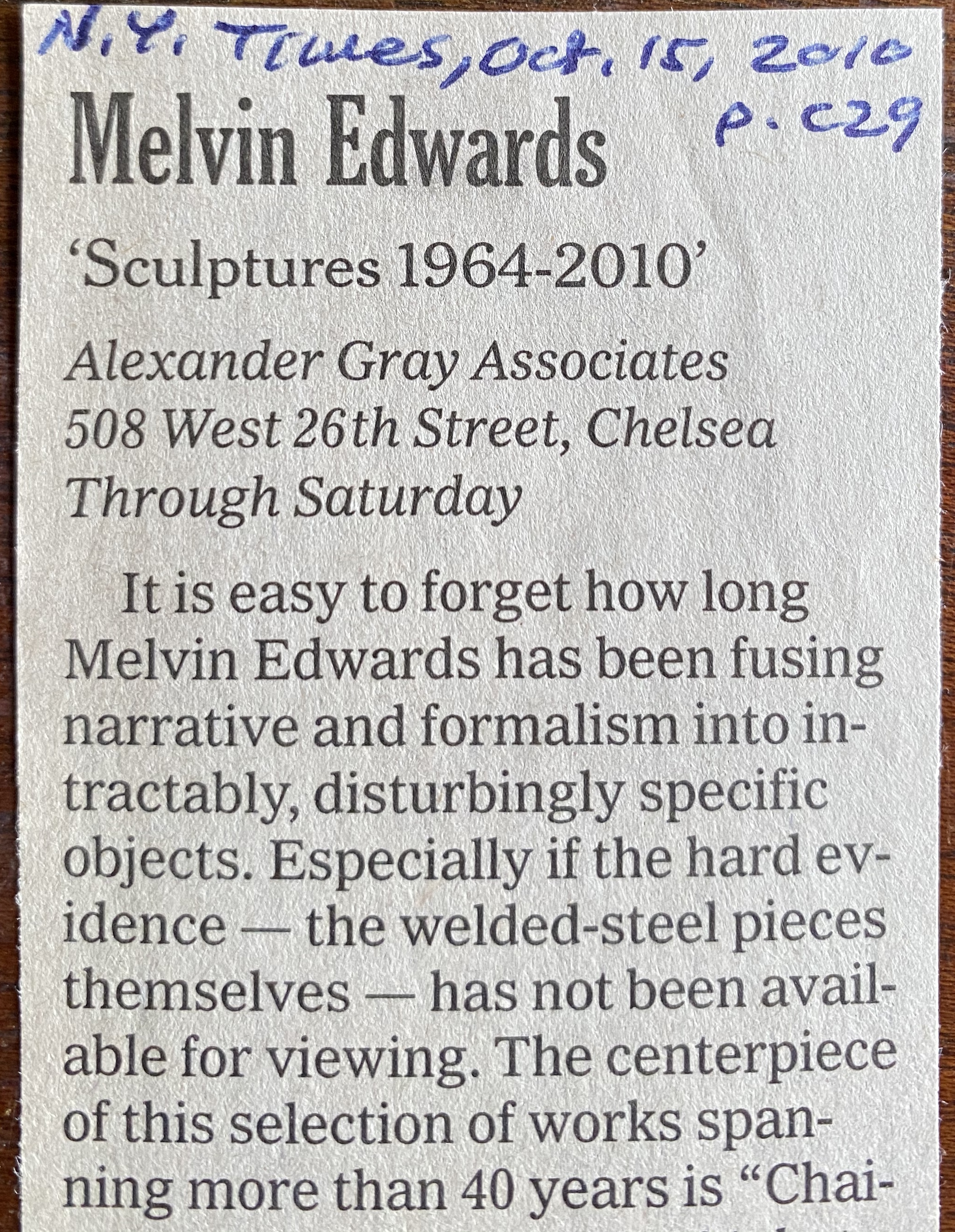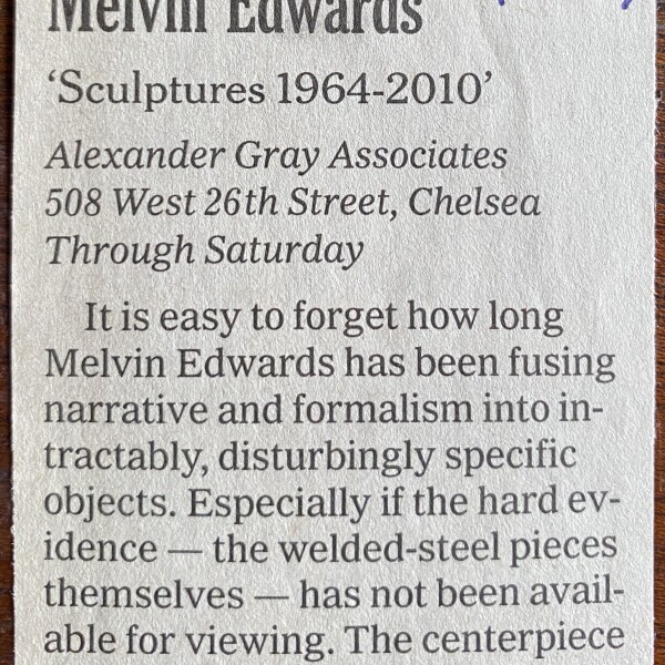 (Melvin Edwards). Roberta Smith. Melvin Edwards. The New York Times. October 15, 2010. Clipping