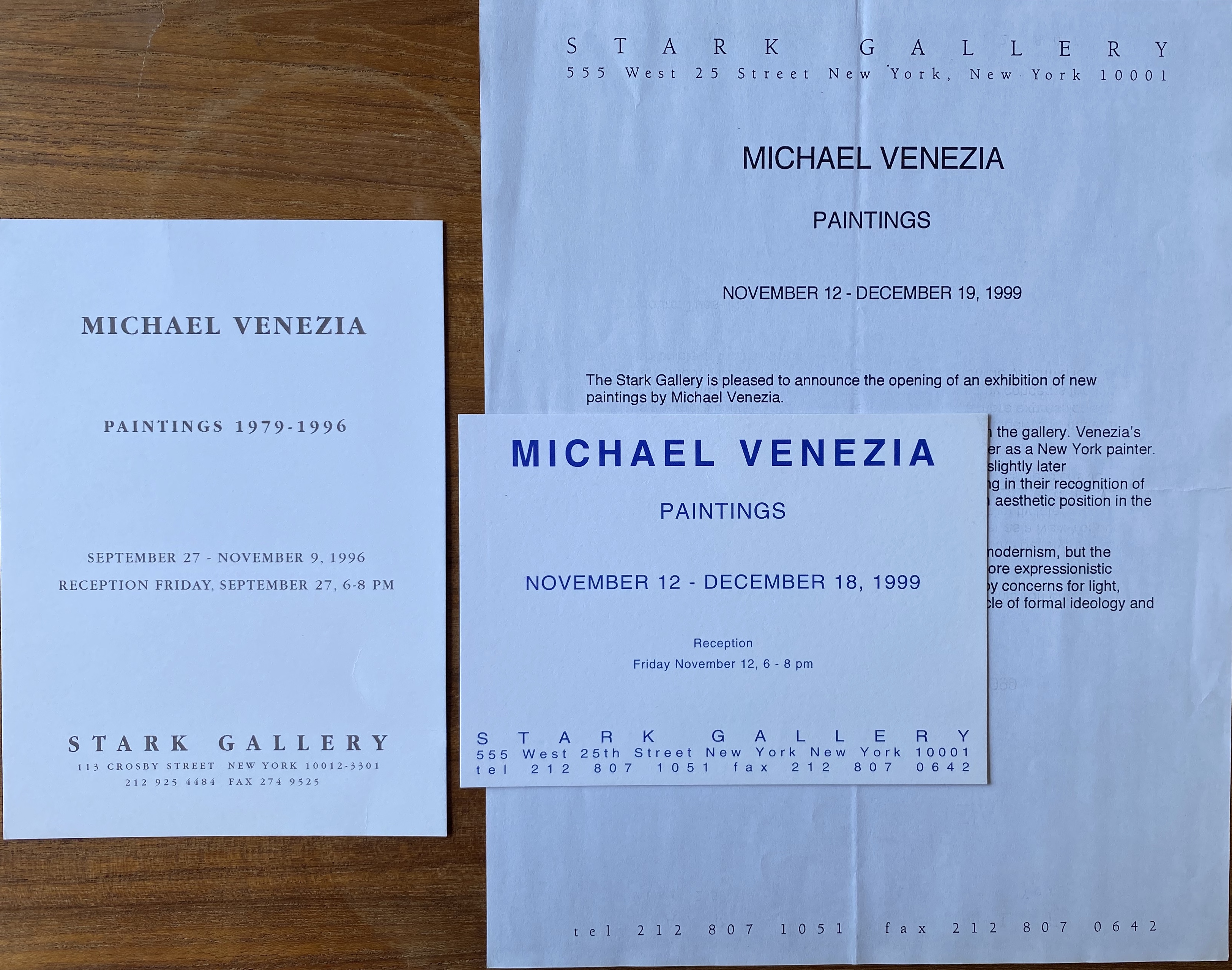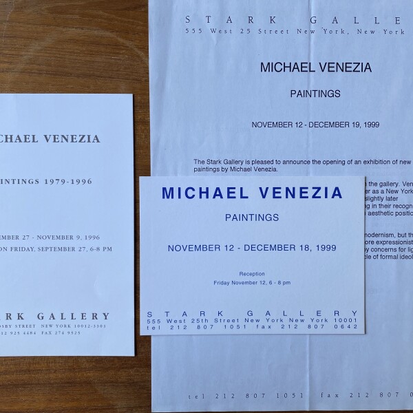 Michael Venezia. 2 announcement cards and 1 press release, Stark Gallery, New York