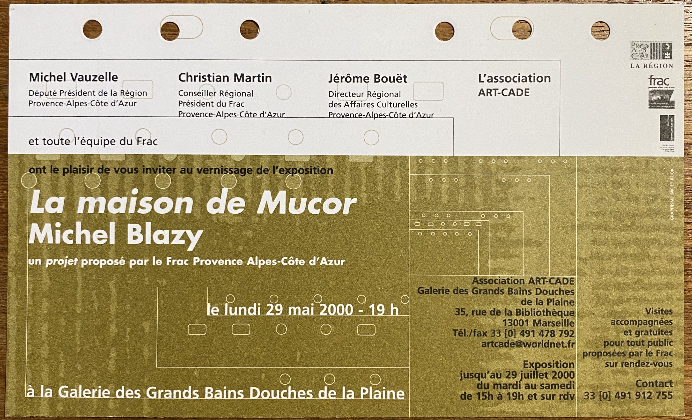 Michel Blazy. La maison de Mucor. Galerie des Grands Bains Douches, Marseille, 29 mai – 28 juillet 2000