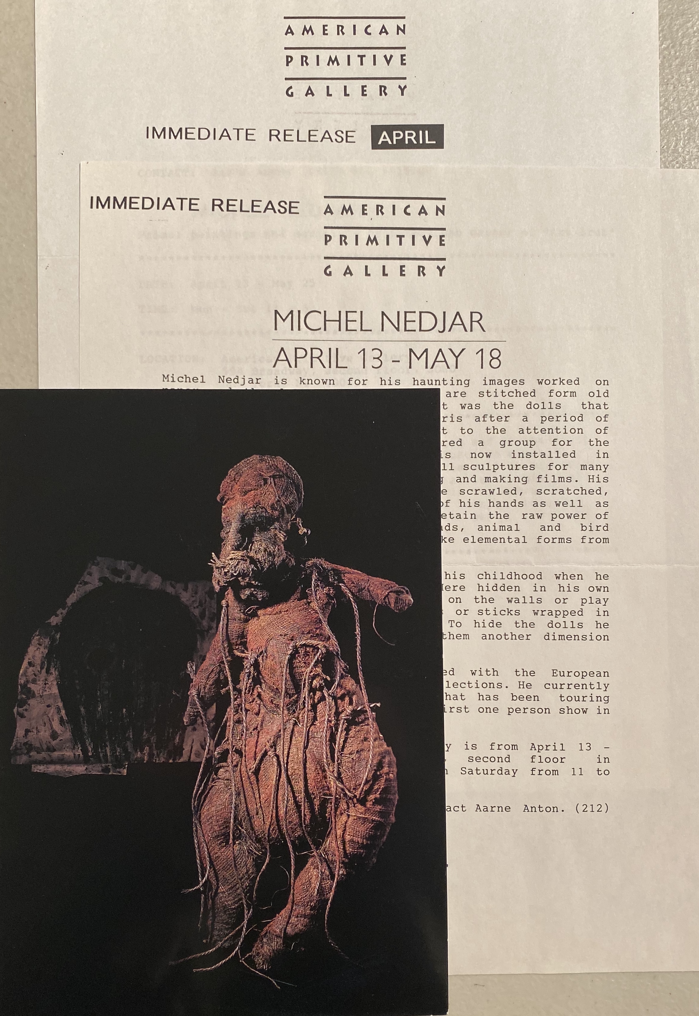 (Michel Nedjar). Michel Nedjar. American Primitive Gallery, New York, April 13 – May 18, [1996]