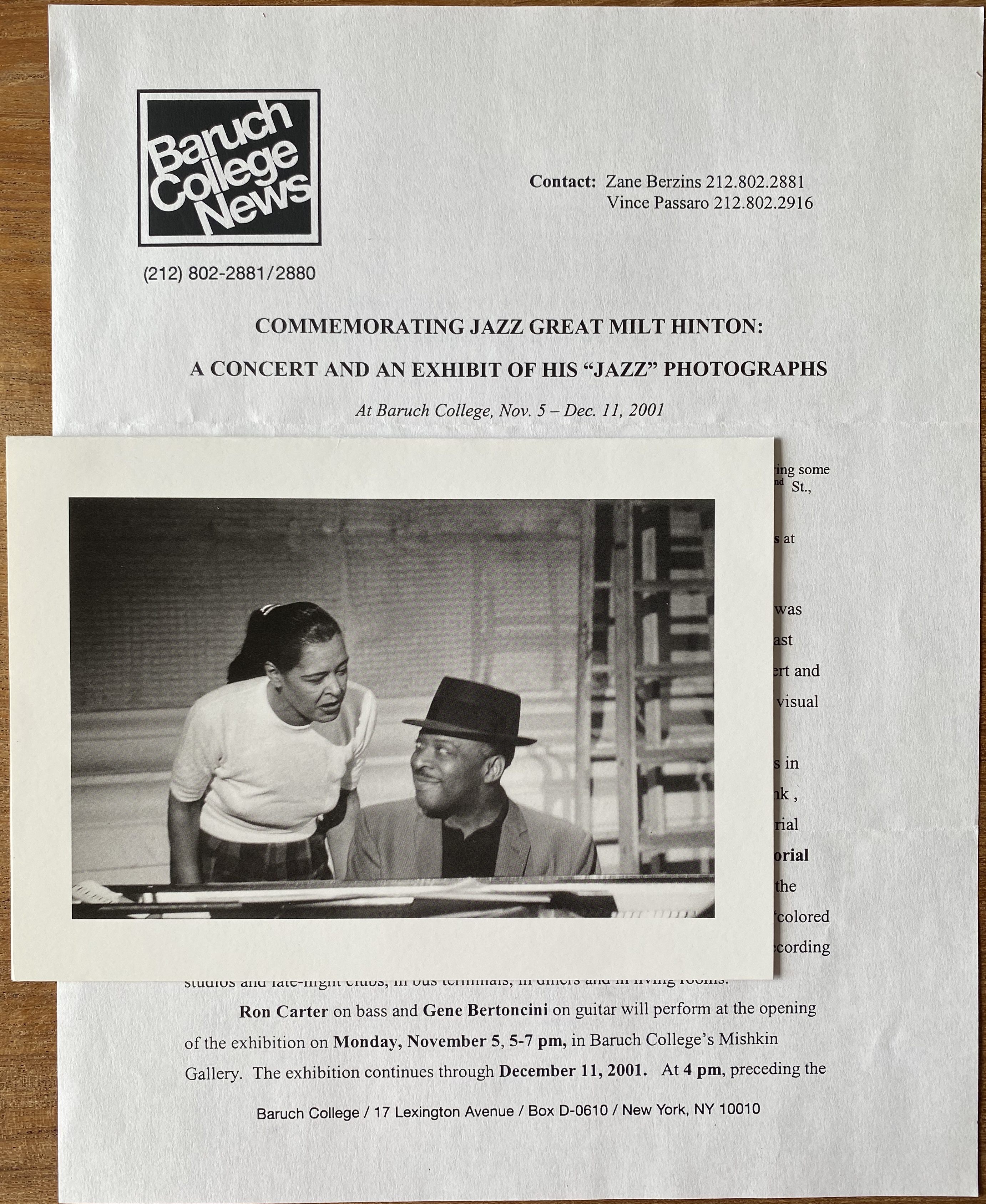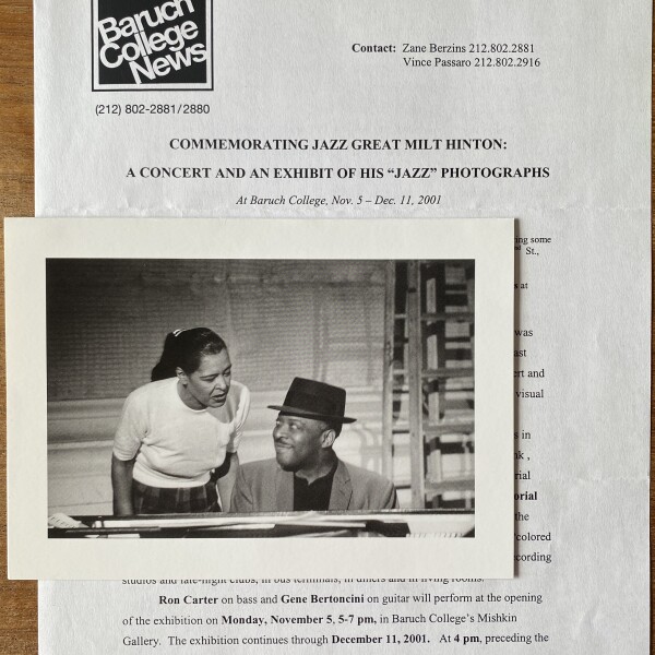 (Milt Hinton). Milt “The Judge” Hinton: A Memorial Exhibition of His Jazz Photographs, 1938 – 1986. Sidney Mishkin Gallery, Baruch College, New York, November 5, 6 – December 11, 2001