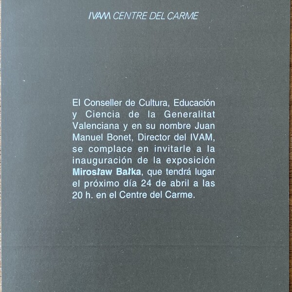 (Mirosław Balka). Mirosław Balka. IVAM, Valencia, 24 de abril [de 1997]