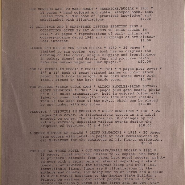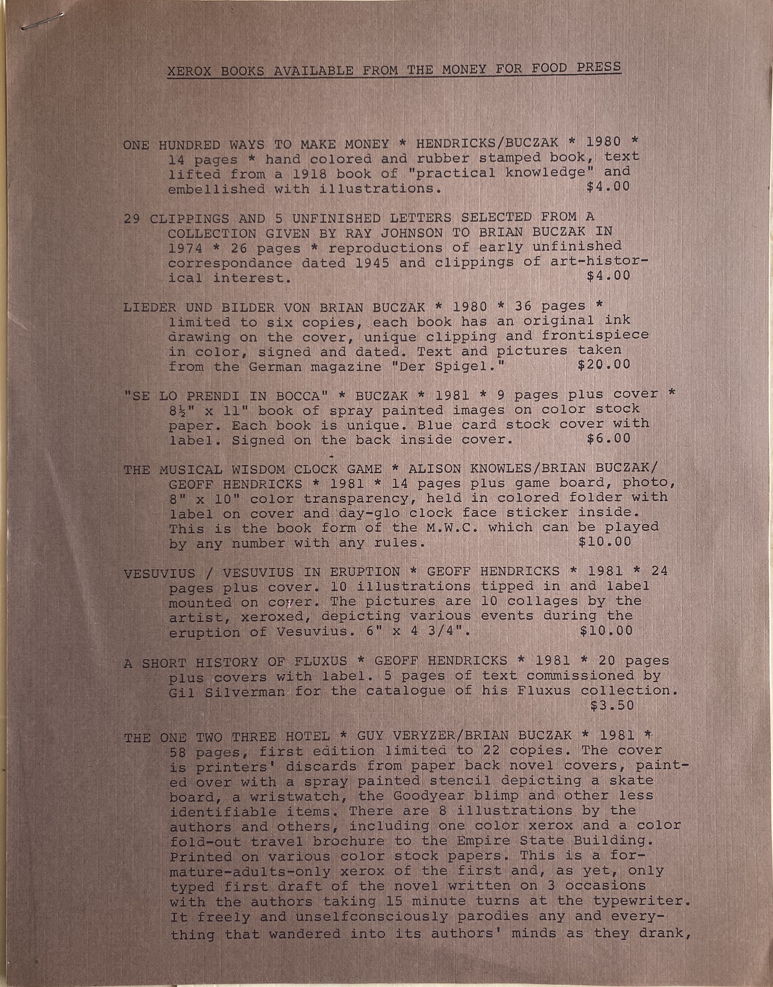(Money for Food Press, New York). Xerox books available from the Money for Food Press. No date [1981?]