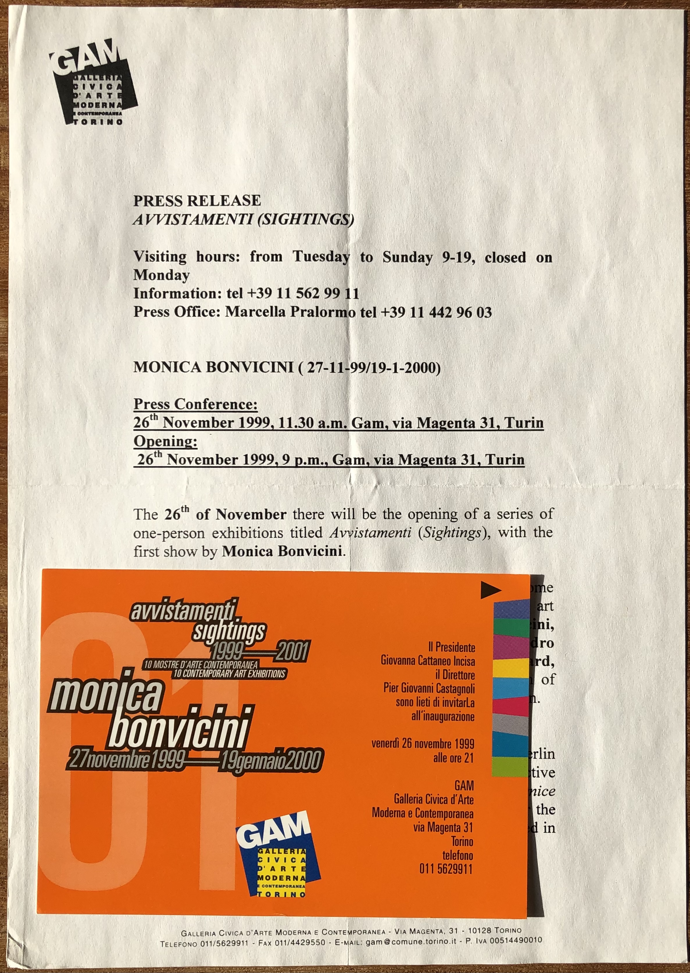 Monica Bonvicini. Avvistamenti (Sightings). Galleria Civica d’Arte Moderna e Contemporanea, Torino, 27 novembre 1999 – 19 gennaio 2000