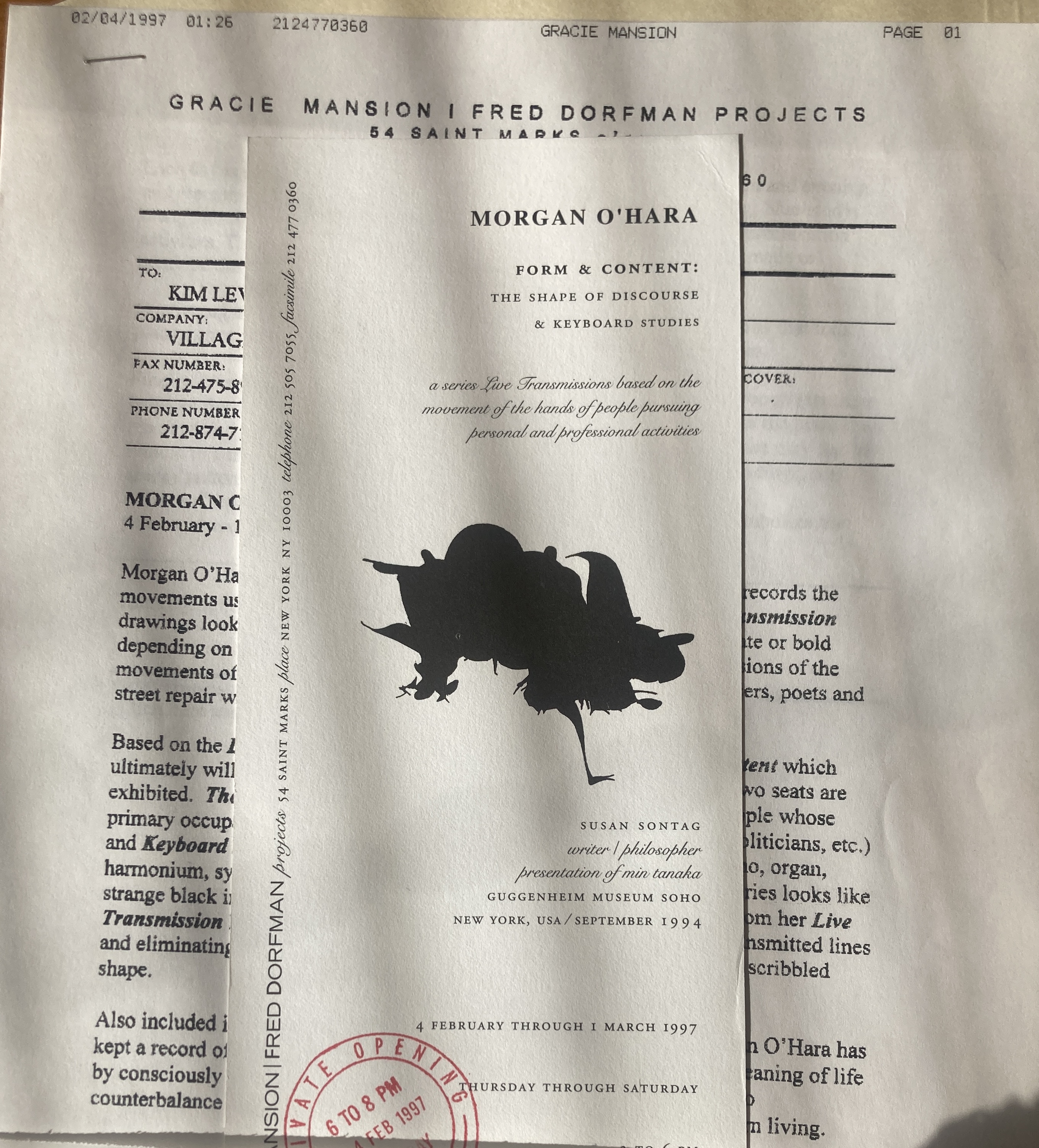 2-page facsimile press release, February 4, 1997. Stapled with photocopy of one page of both sides of the announcement card