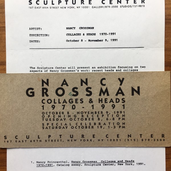 Nancy Grossman. Collages & Heads, 1970 – 1991. Sculpture Center, New York, October 8 – November 9, 1991