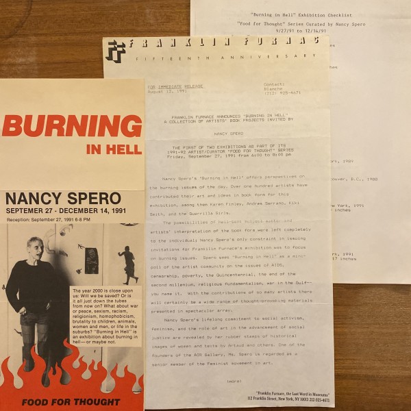 Nancy Spero. Burning in Hell. Franklin Furnace, New York, September 27 – December 14, 1991