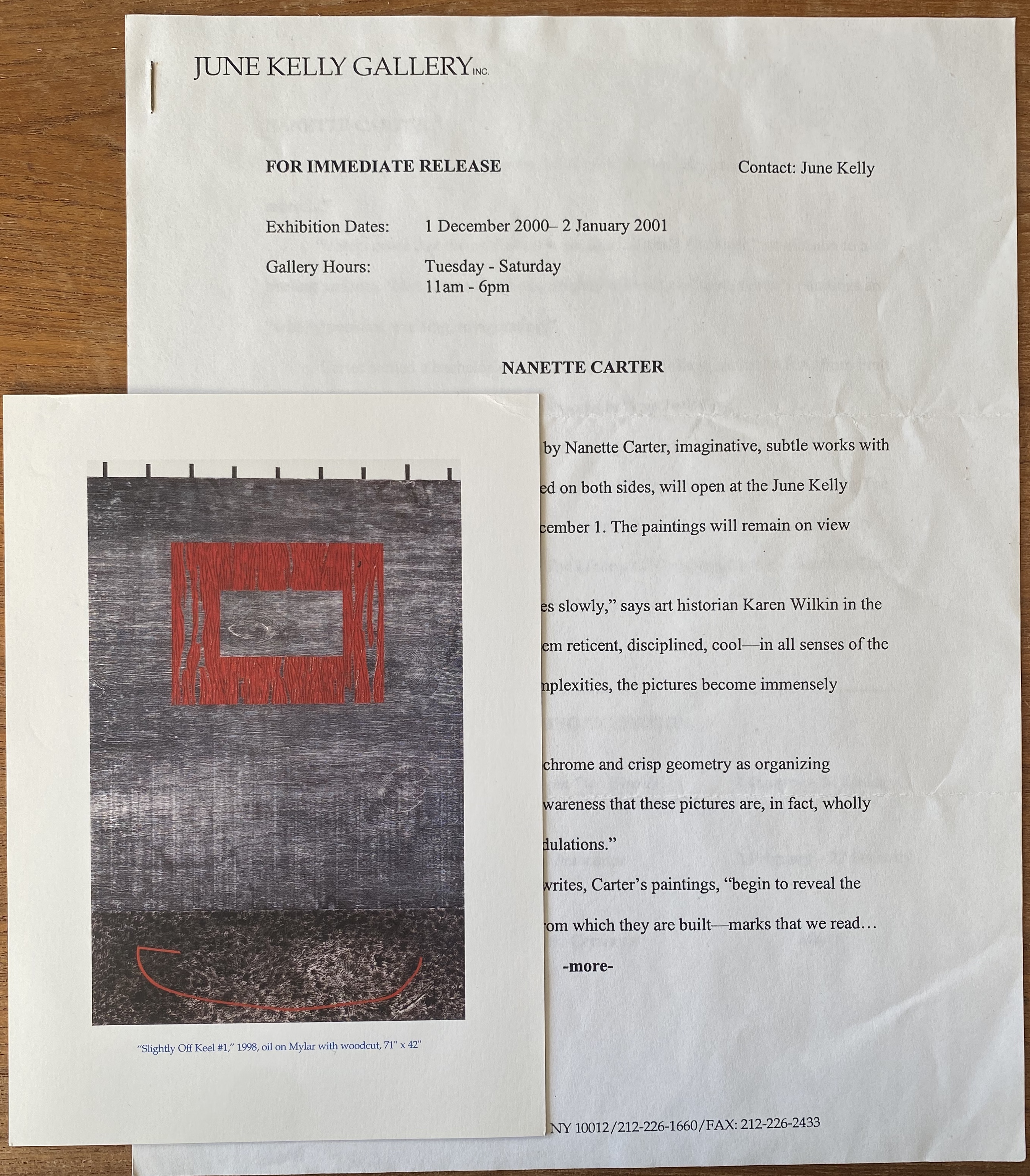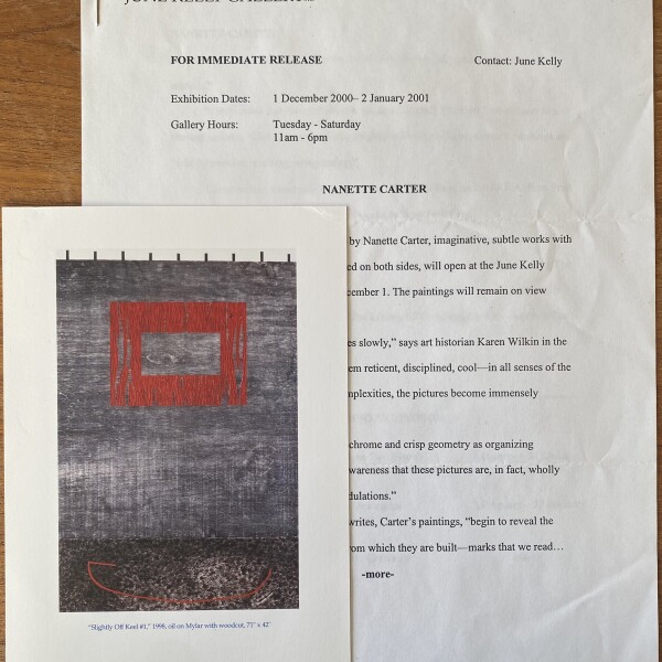 Nanette Carter. Slightly Off Keel. June Kelly Gallery, New York, 1 December 2000 – 2 January 2001