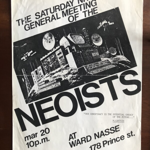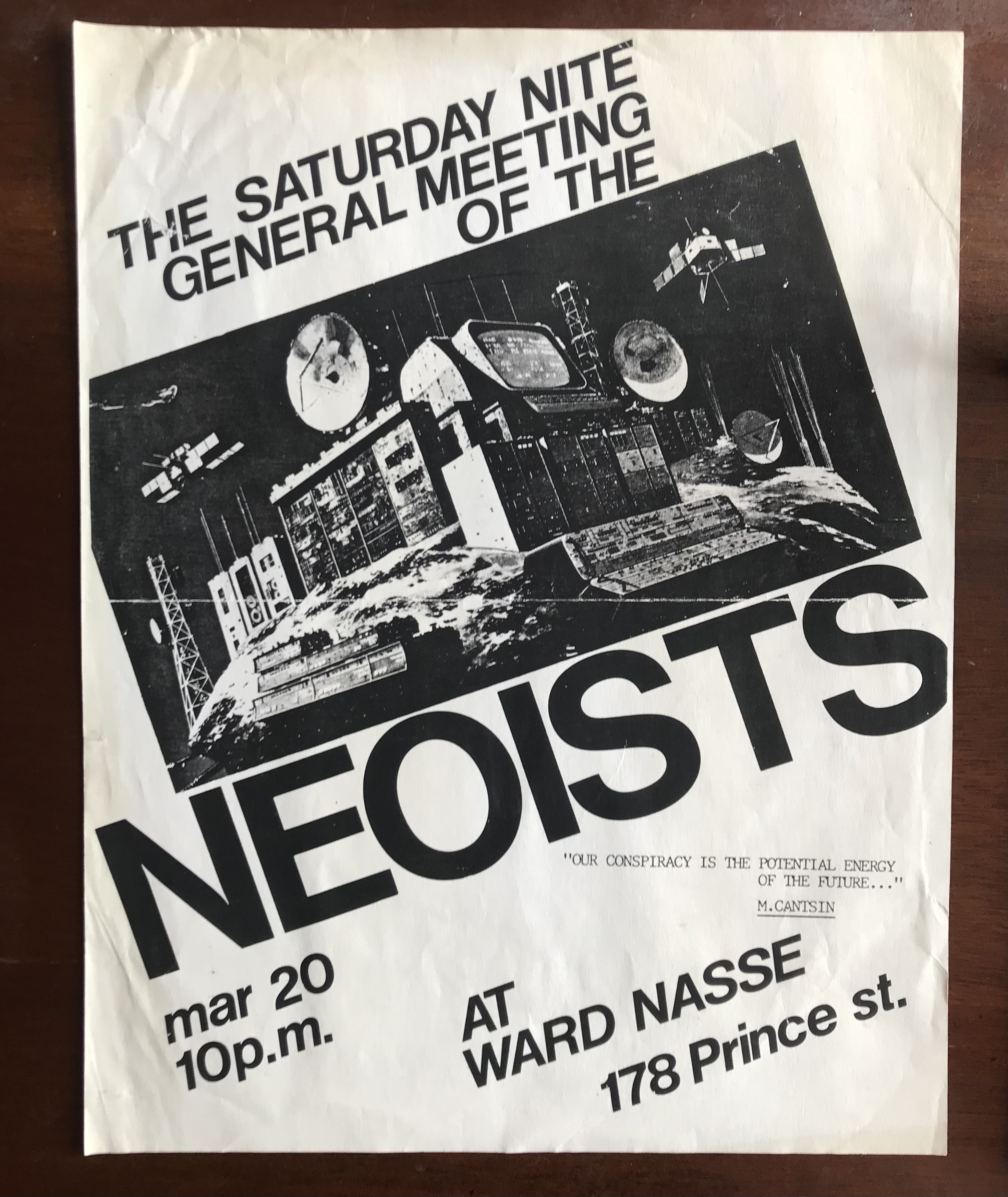(Neoists). The Saturday Nite General Meeting of the Neoists. Ward Nasse, [New York], March 20, 1982