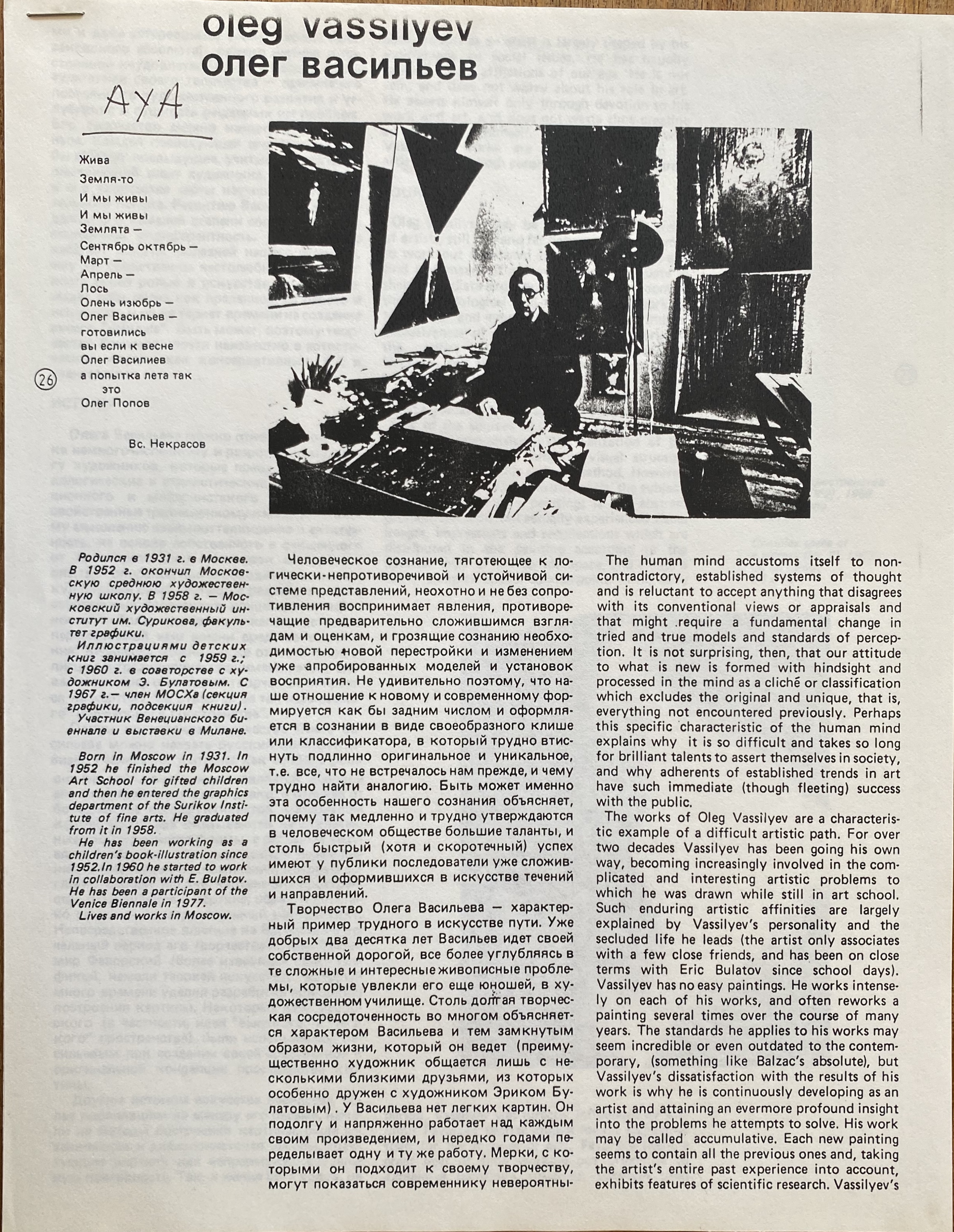 (Oleg Vassiliev). Oleg Vassiliev, by S.S. (Russian/English). Unidentified source.