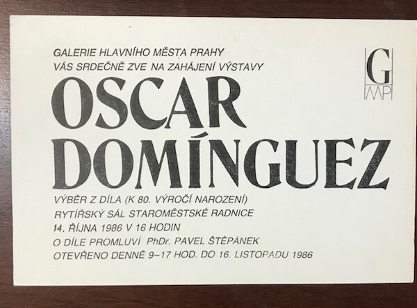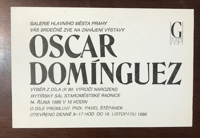 (Oscar Domìnguez). Oscar Domìnguez. Galerie Hlavního Mesta Prahy, 14 ríjna – 16 listopad 1986