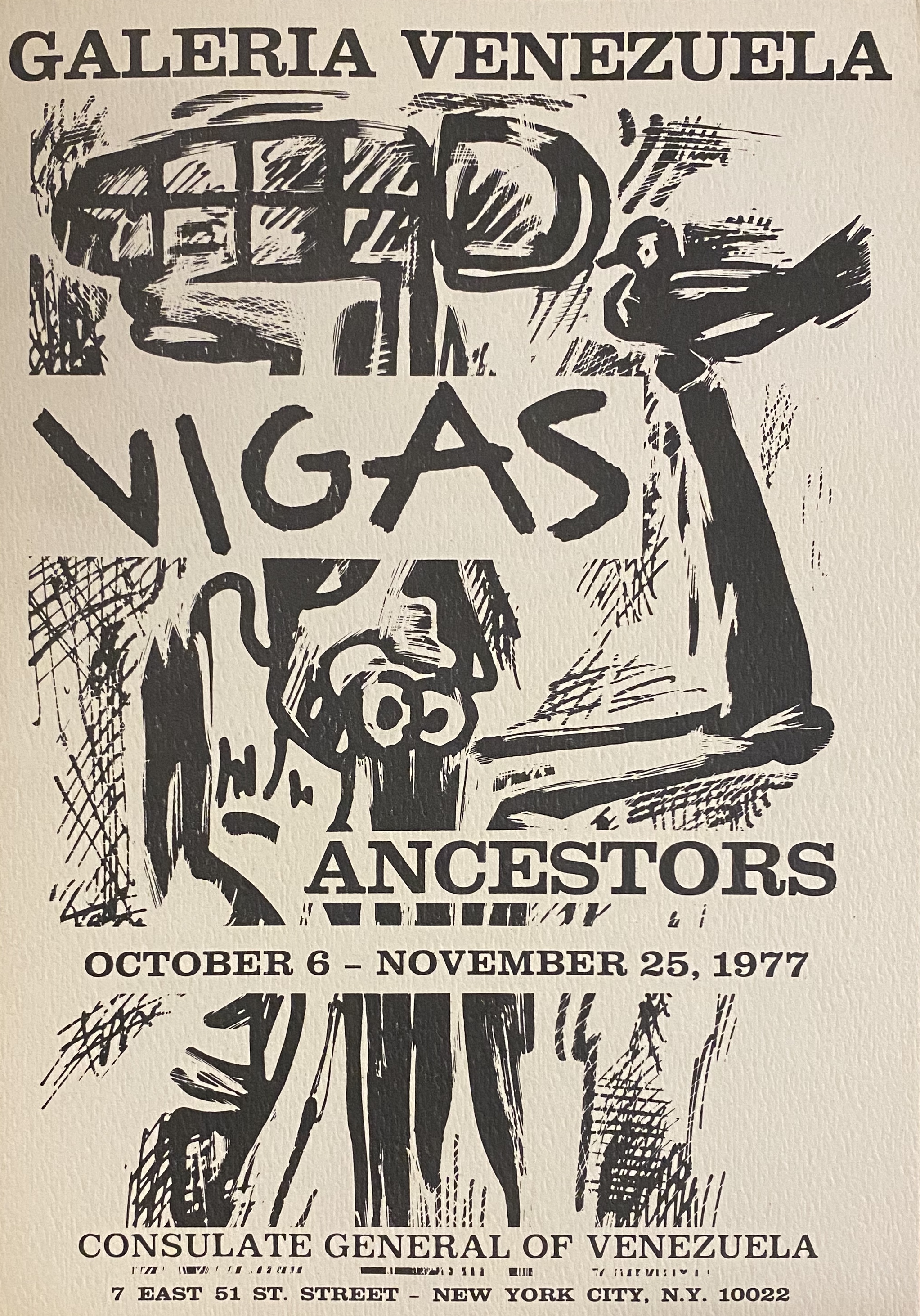 (Oswaldo Vigas). Galeria Venezuela, Consulate General of Venezuela, New York, October 6 – November 25, 1977