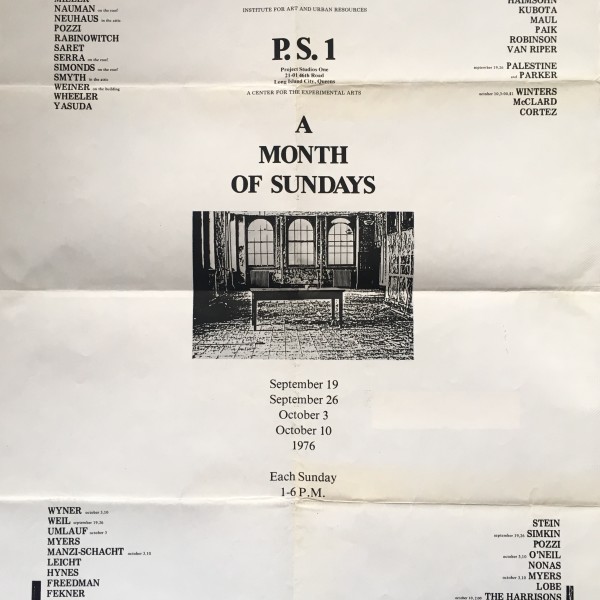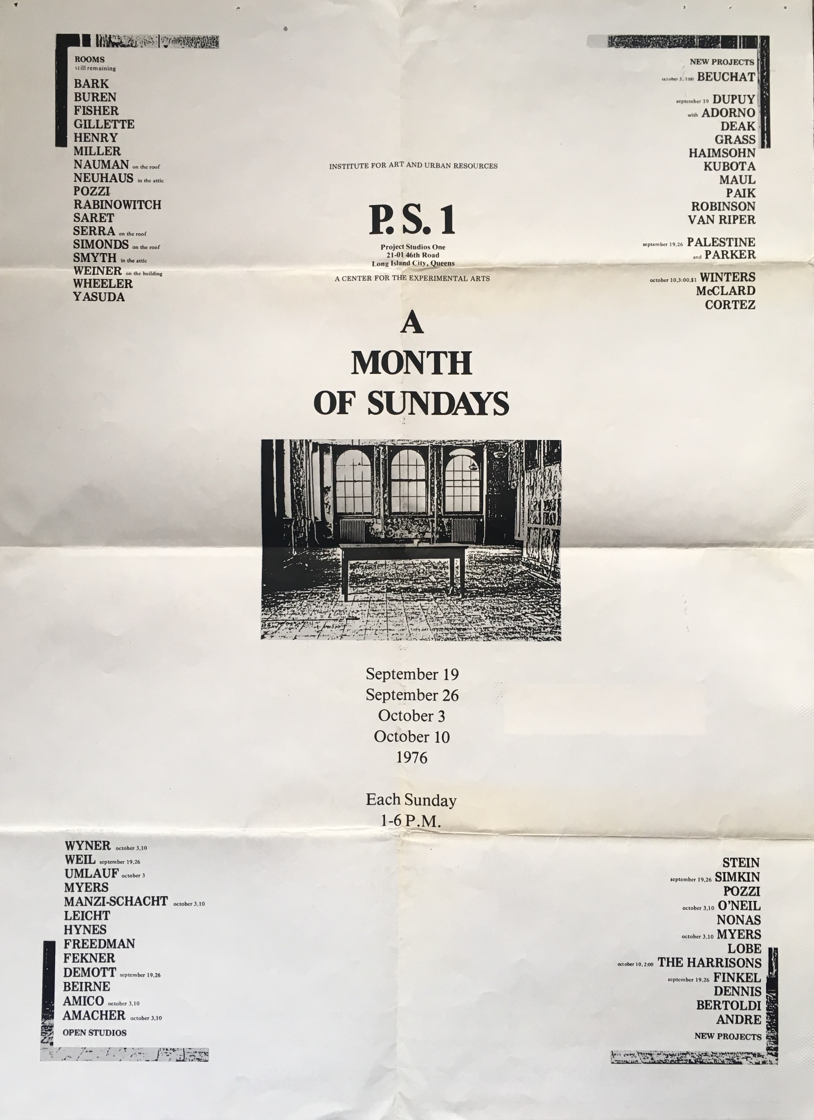 (P.S.1, Long Island City, New York). A Month of Sundays. P.S.1, Long Island City, New York, September 19, 26, October 3, 10, 1976
