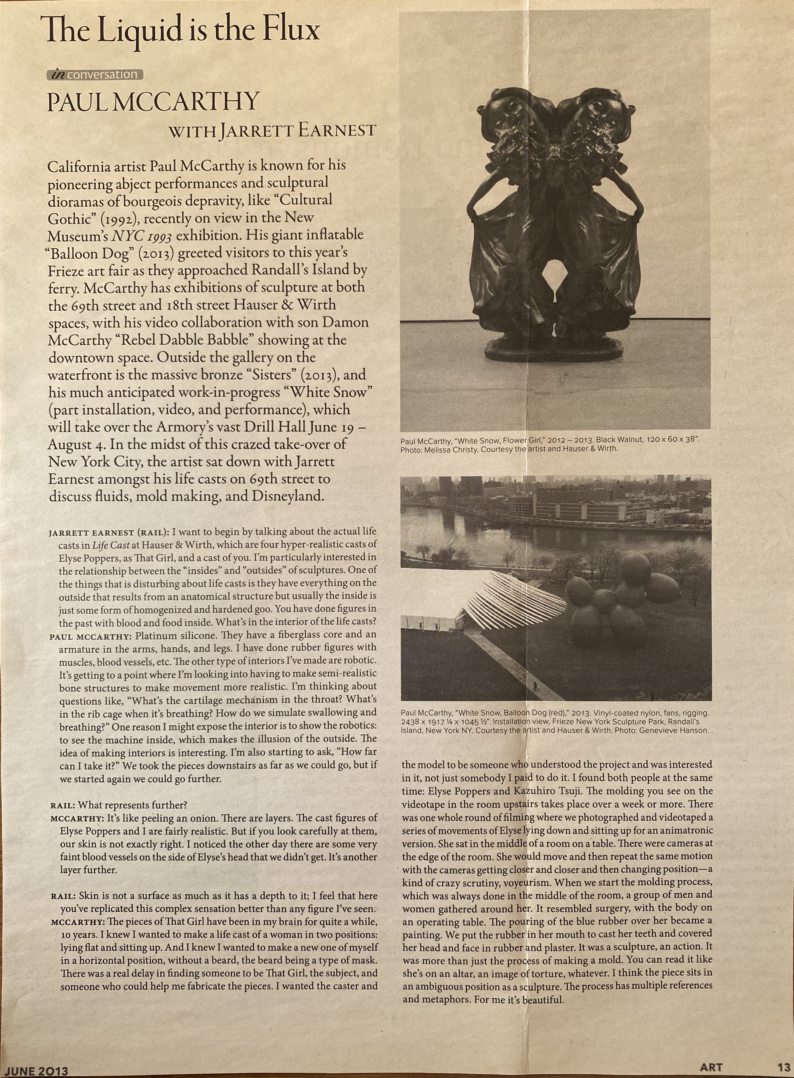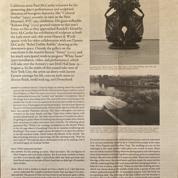 (Paul McCarthy). In conversation: Paul McCarthy, with Jarrett Earnest / The Liquid is the Flux. The Brooklyn Rail, June 2013, page 13-14