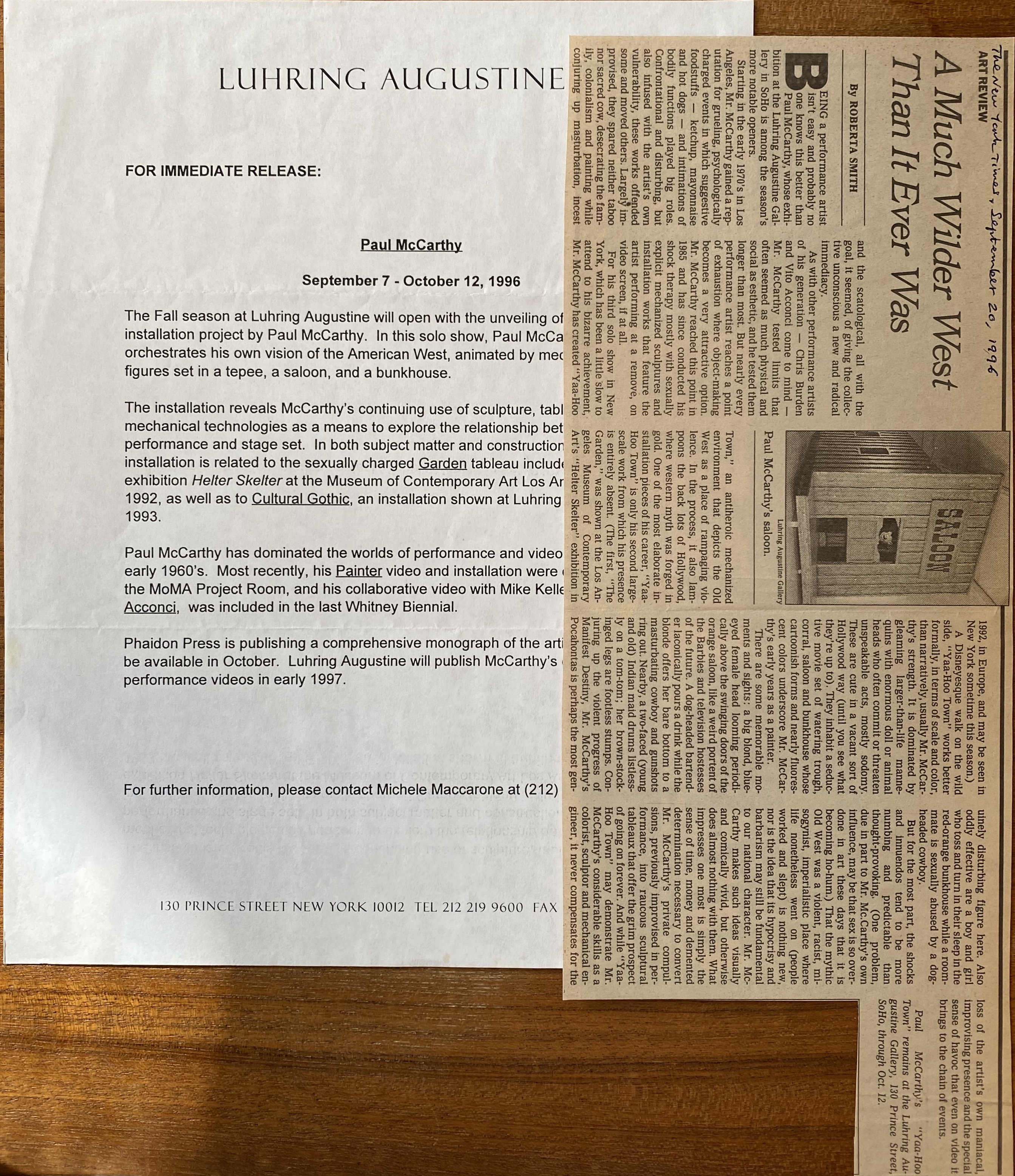 (Paul McCarthy). Paul McCarthy. Luhring Augustine, New York, September 7 – October 12, 1996